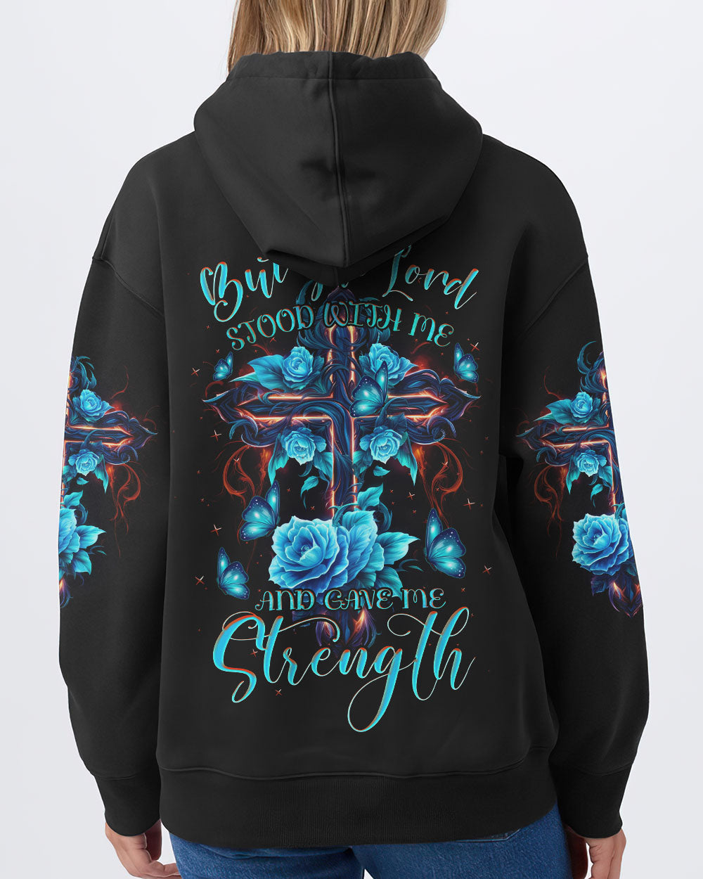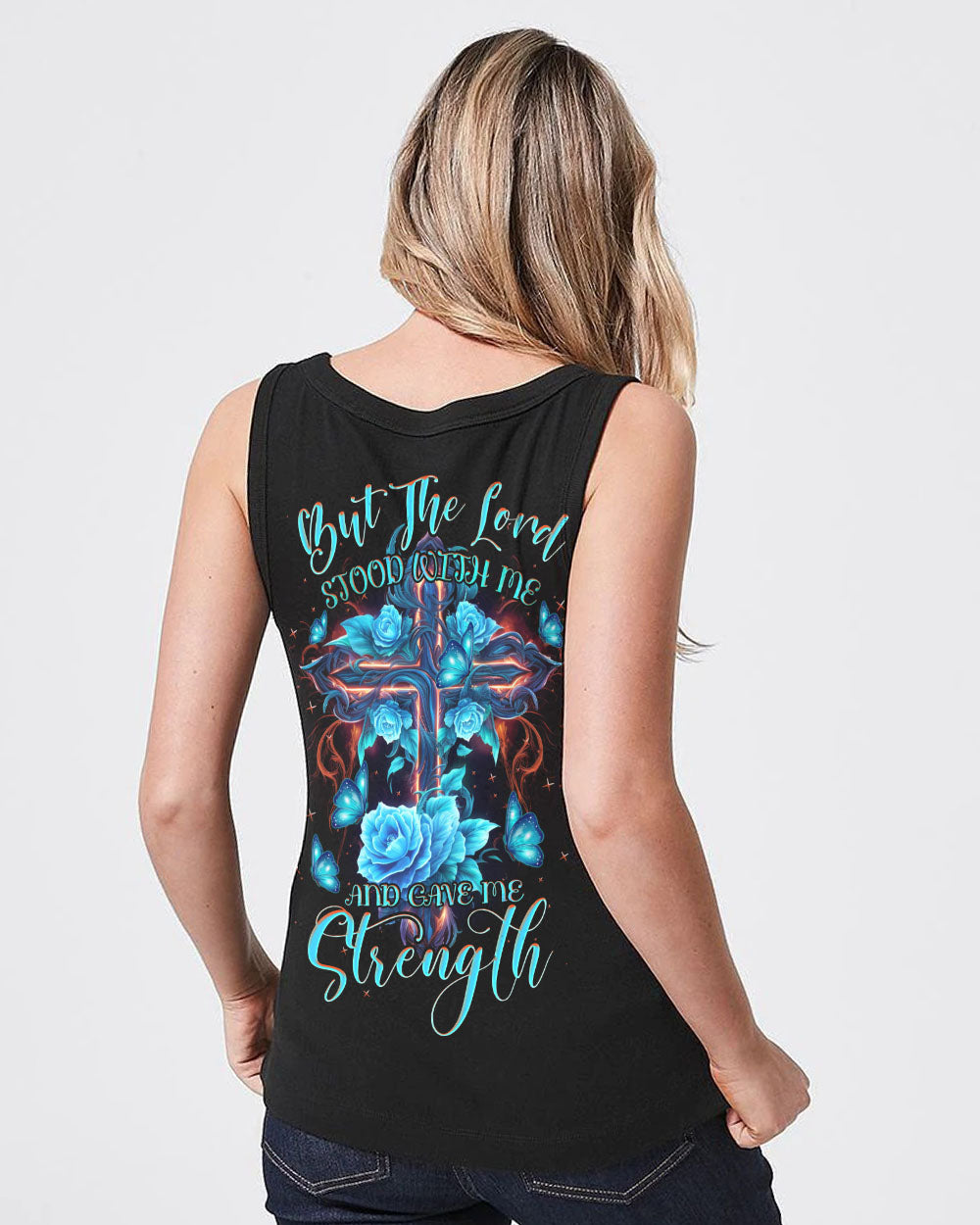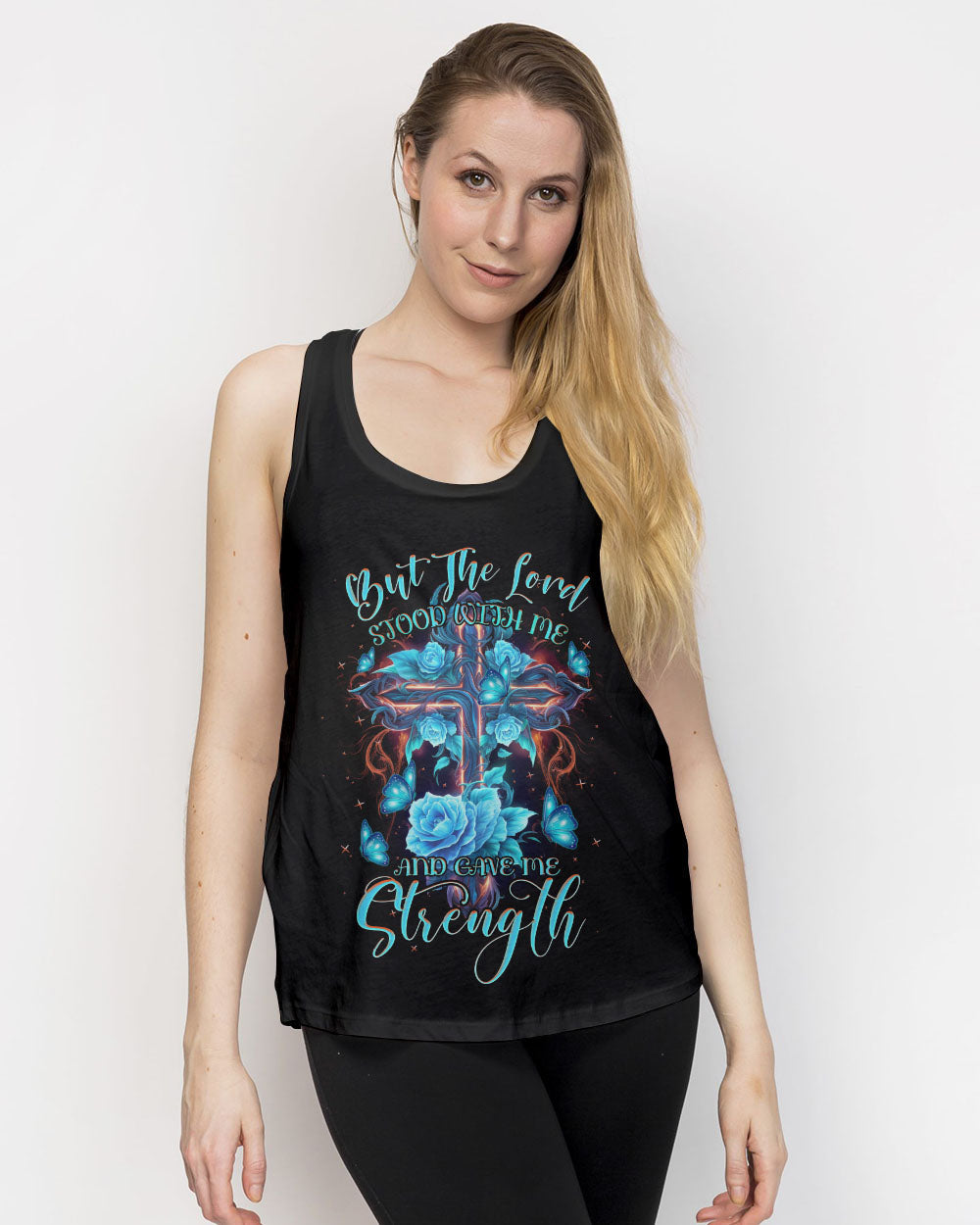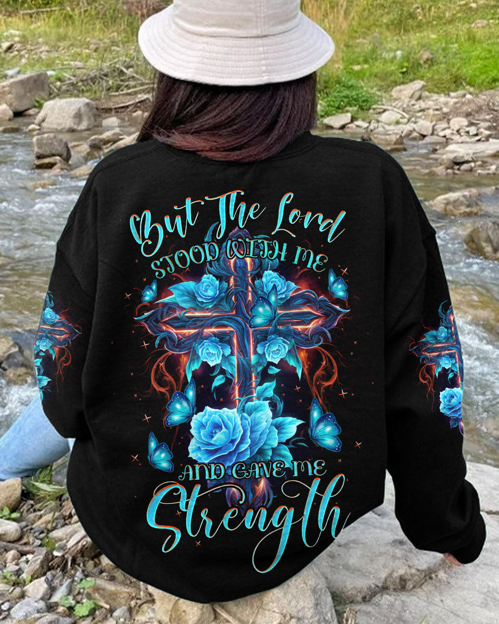 Illuminate your faith in God and embrace inner strength with our Lord Stood With Me Women's All Over Print Shirt. This radiant design features a sacred rose cross, symbolizing divine strength and grace, and the words, "but the Lord stood with me and gave me strength." A powerful reminder of God's presence and a testament of unwavering faith.