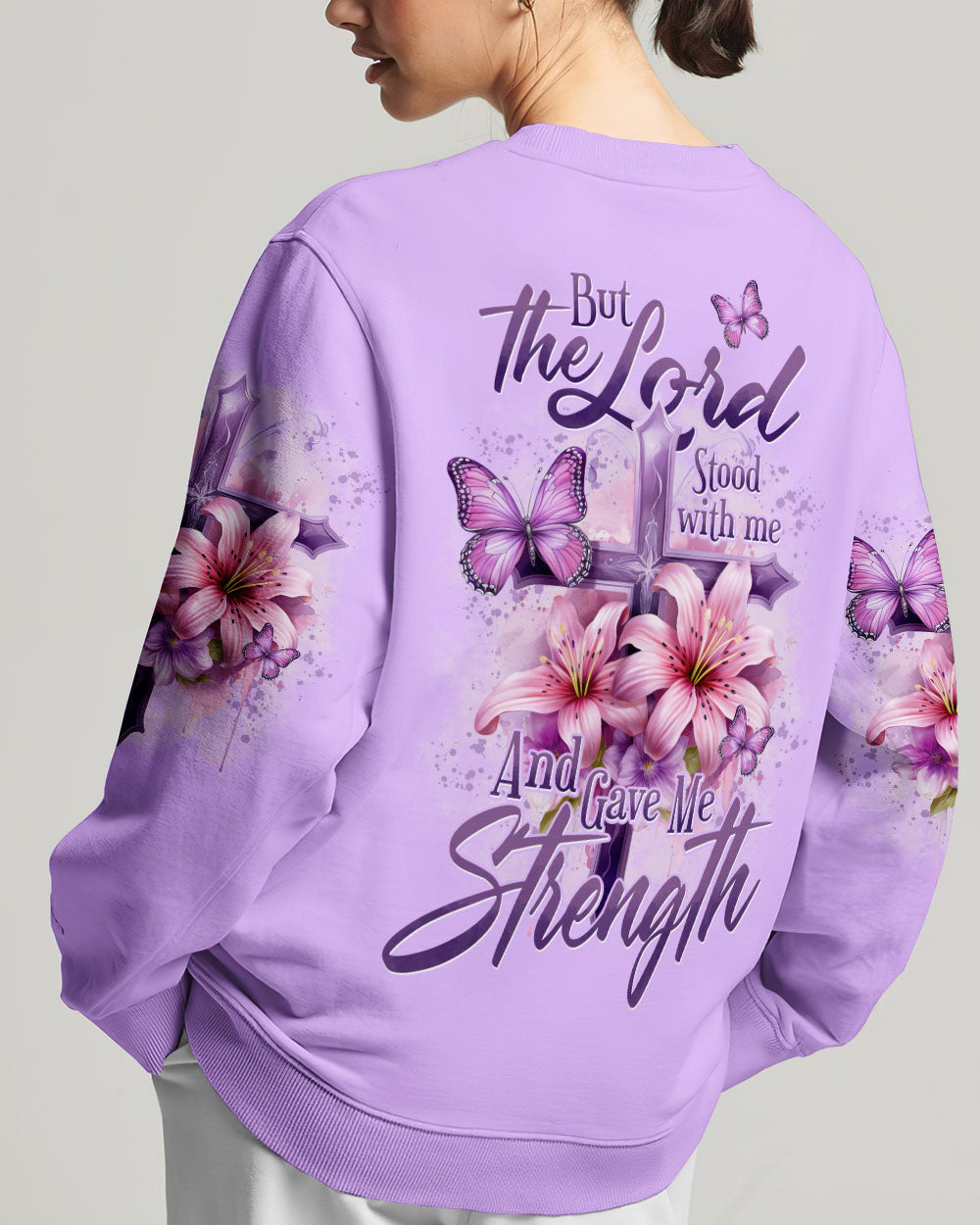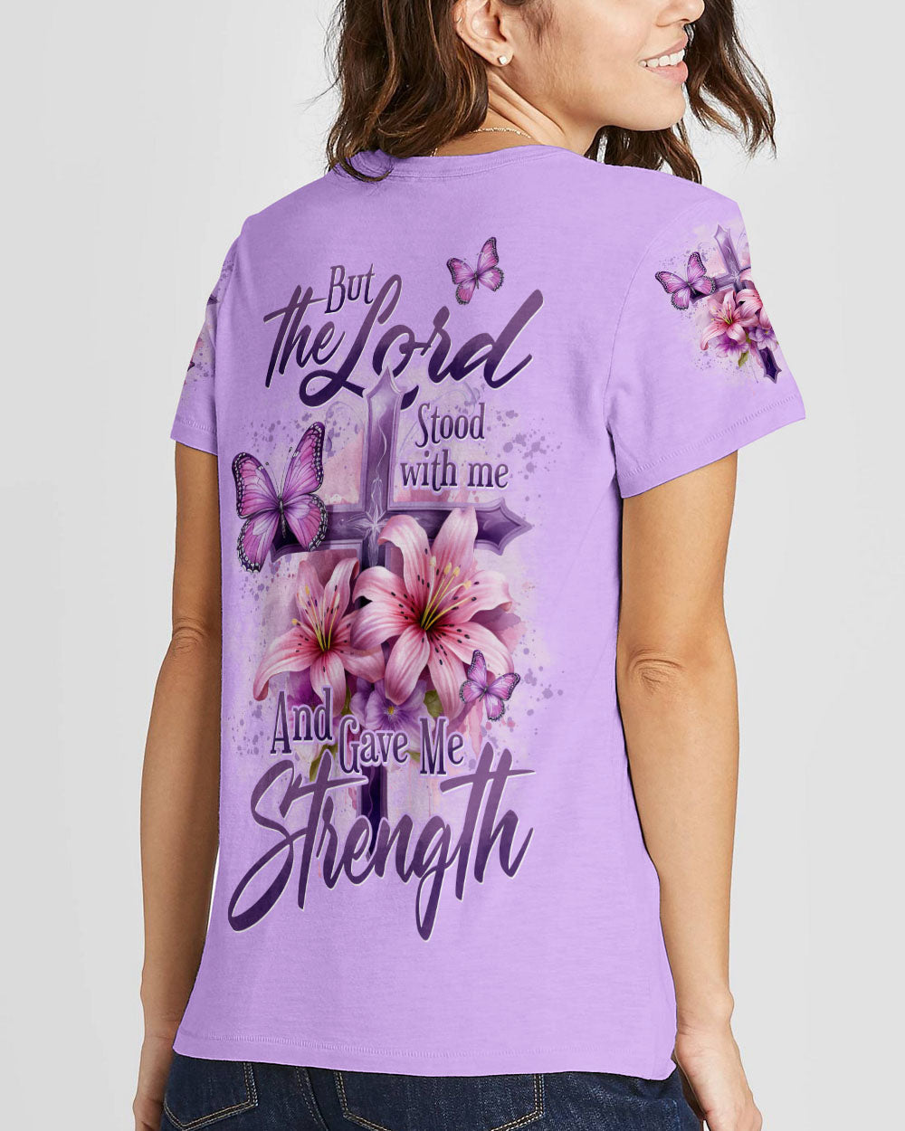 Indulge in the beauty of Christian faith with our captivating shirt. Featuring crosses, lilies, and butterflies, it symbolizes spiritual strength, purity, and transformation. The empowering quote "But the Lord stood with me and gave me strength" serves as a reminder of God's unwavering presence and support through life's challenges. Embrace these designs as a testament to the enduring power of faith.