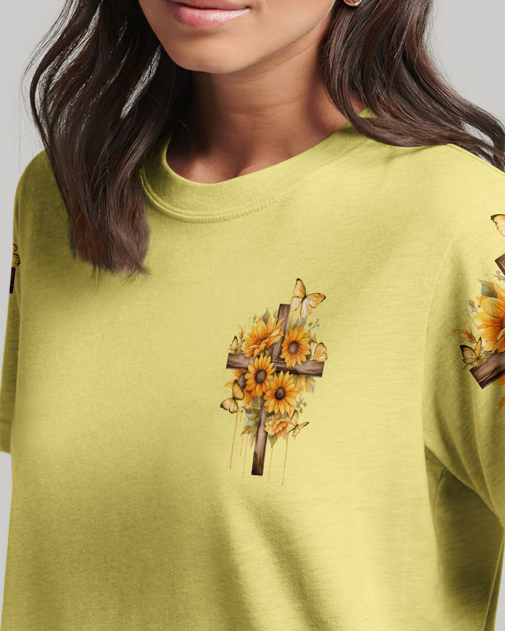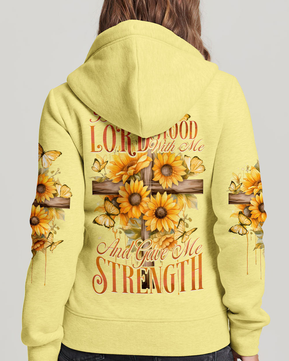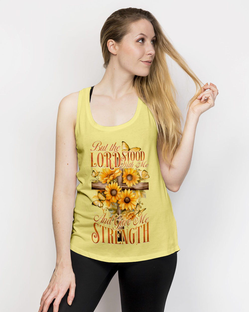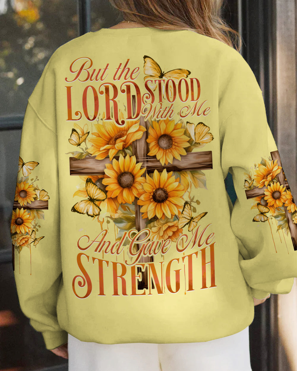 Illuminate your Christian faith with our design that flawlessly blends a cross, sunflower, butterfly, and the empowering quote: 'but the Lord stood with me and gave me strength.' This composition encapsulates profound spiritual essence, uniting devotion, resilience, and transformation. The cross embodies unyielding faith, the sunflower signifies enduring strength, and the butterfly represents growth. This design is a tribute to the steadfast support of faith. Prepare to be moved by the impactful message and the profound depth of this remarkable creation.
