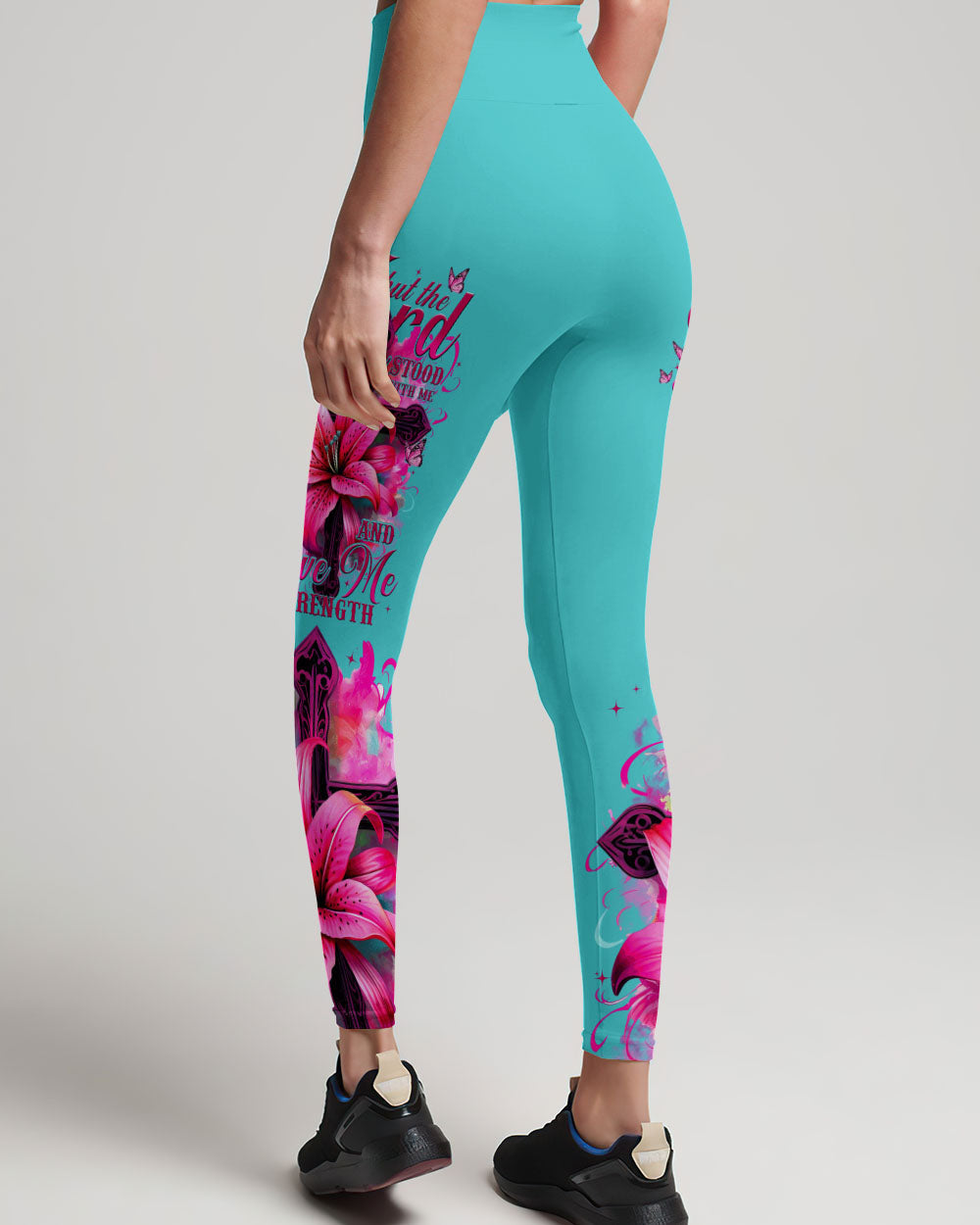 Unveil a mesmerizing design that gracefully captures the core of the Christian faith, harmonizing crosses, lilies, and butterflies. The empowering verse, 'But the Lord was by my side, empowering me with strength,' stands as a potent reminder of divine support. This composition deeply touches believers, displaying the resolute power of faith and creating a lasting visual impression. Embrace inspiration today!