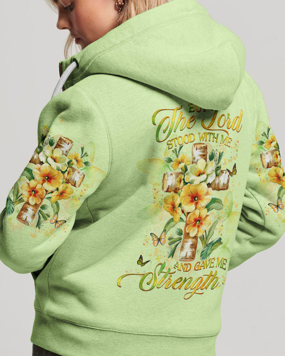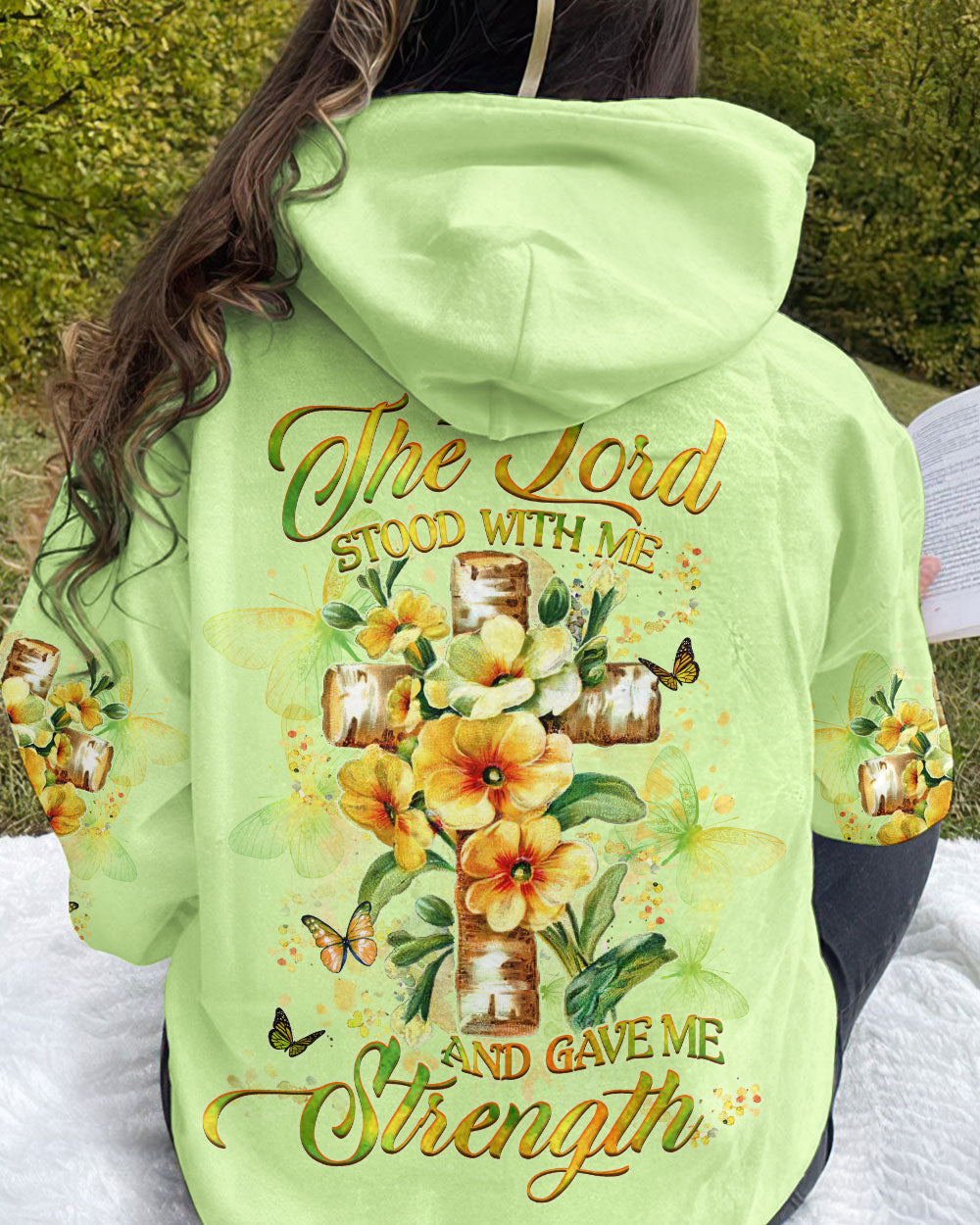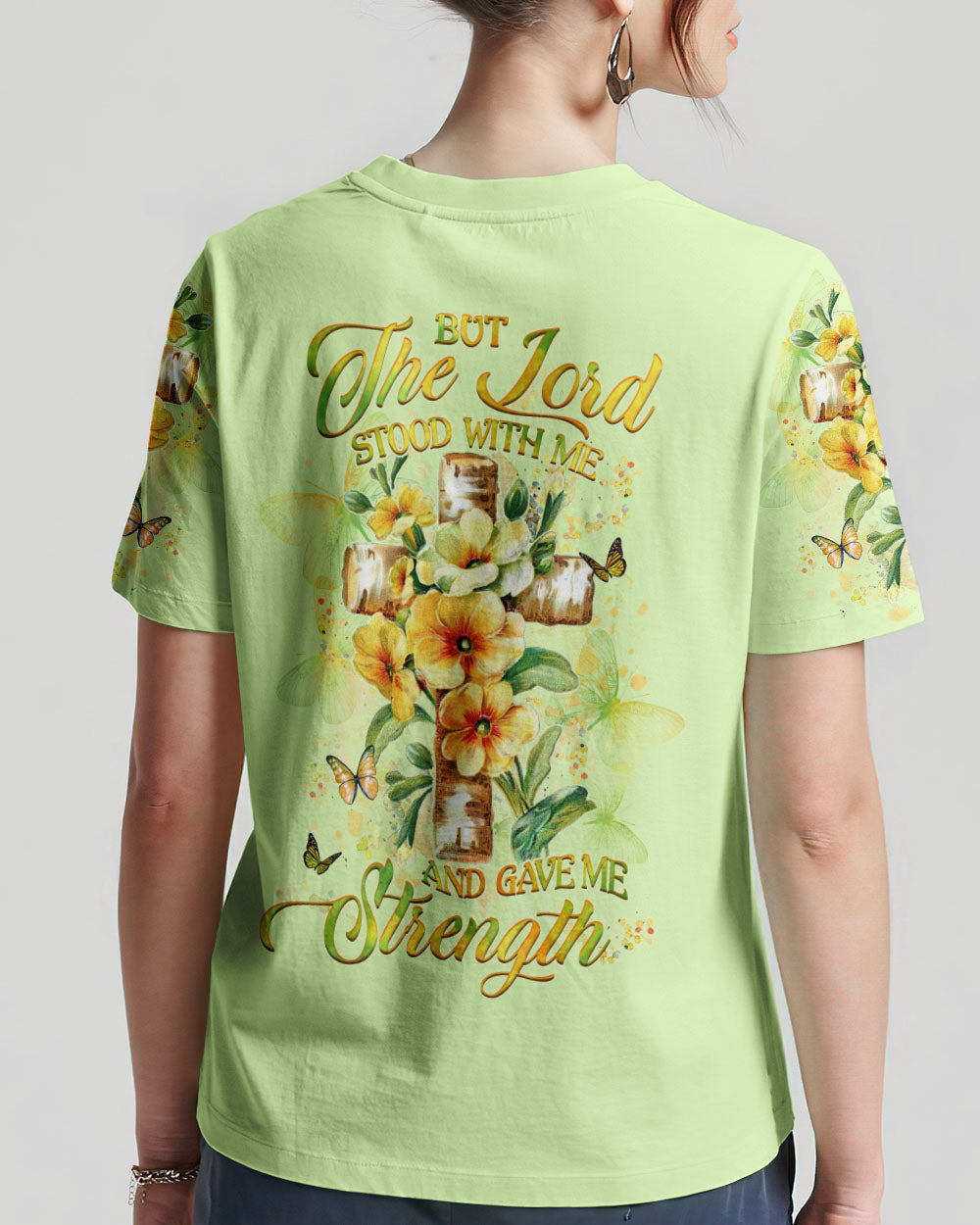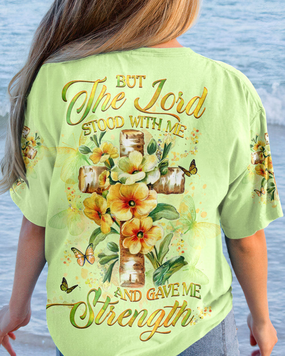 Elevate your faith and discover peace in our design, a harmonious blend of spirituality and the grace of nature. The quote, "But the Lord stood with me & gave me strength," serves as a potent reminder of faith's unwavering presence in life's trials. Wear this design proudly to carry the strength of your beliefs with you wherever you go. Don't miss the chance to convey a message of resilience and spiritual fortitude.