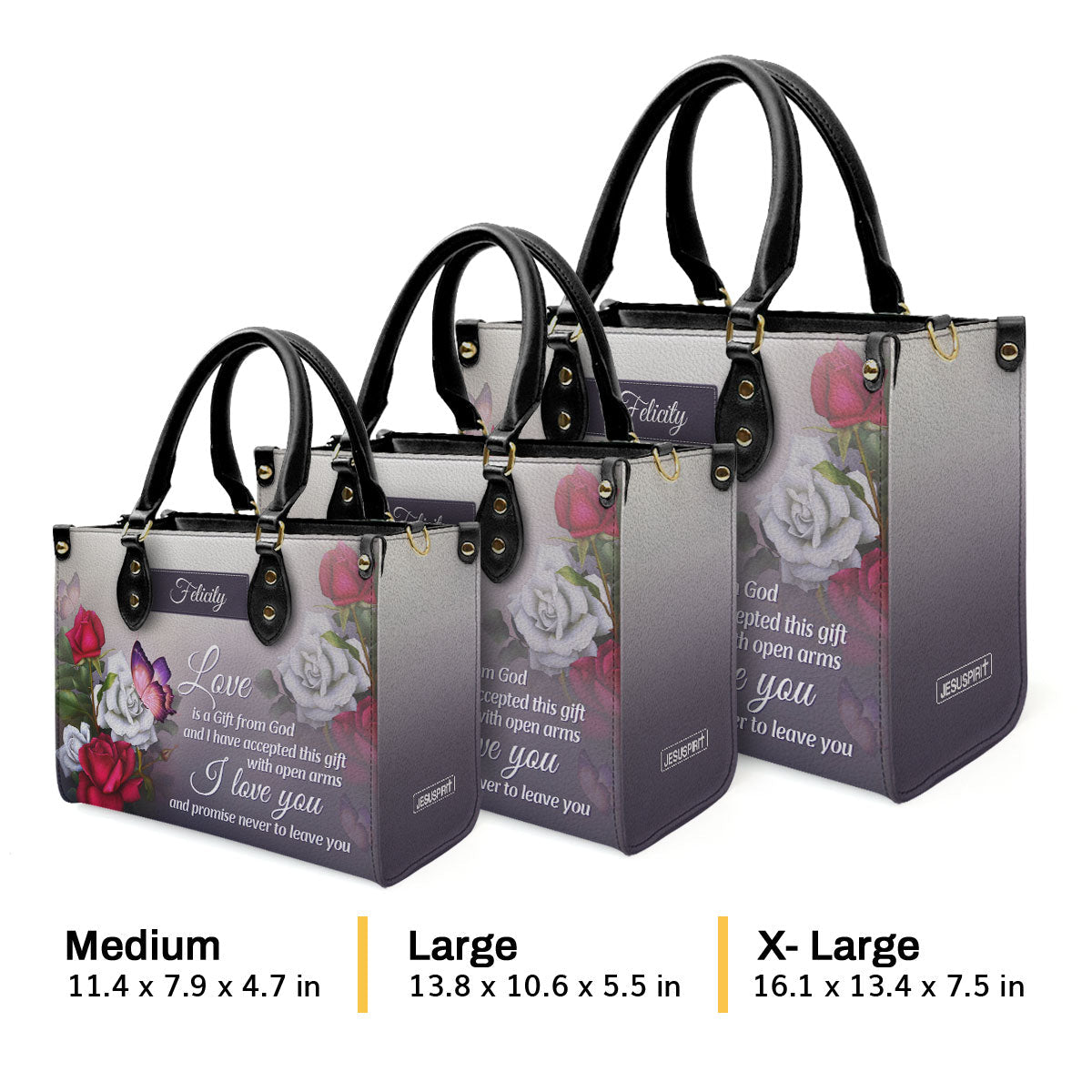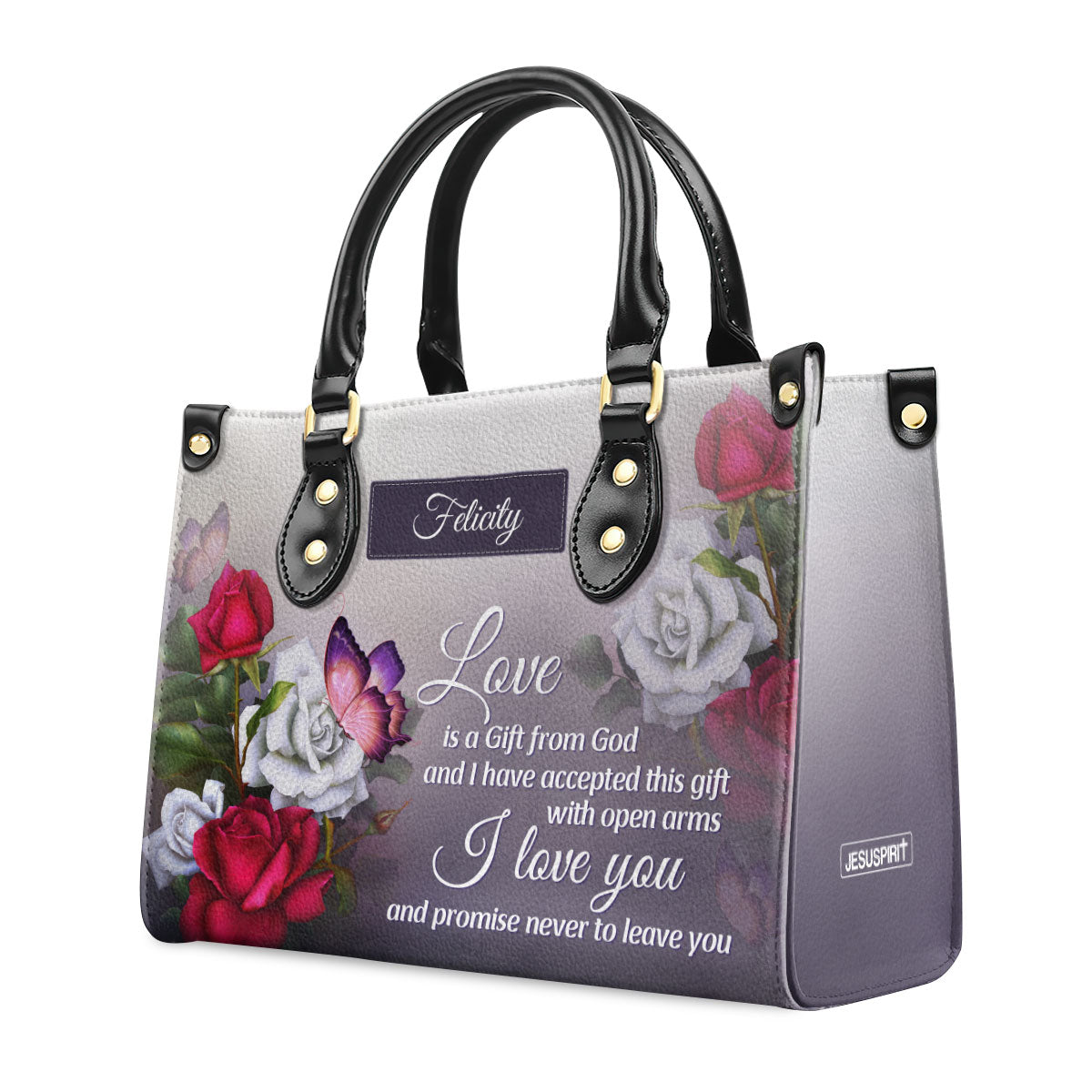 Love Is A Gift From God | Religious Romantic Gifts For Christian Women | Personalized Leather Handbag With Handle LHBH833