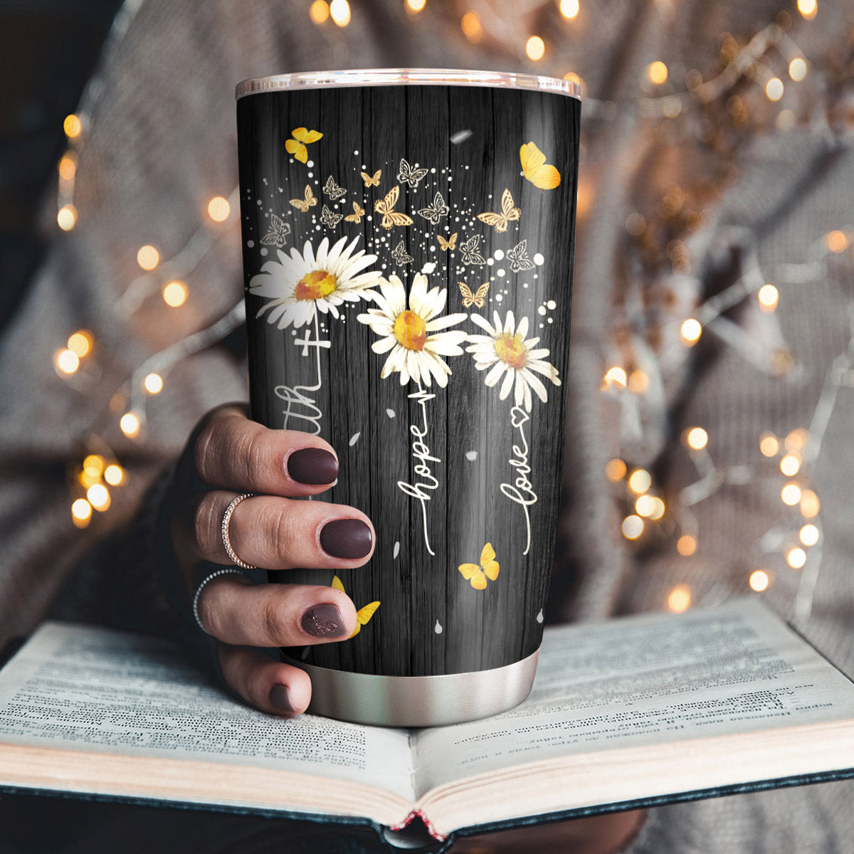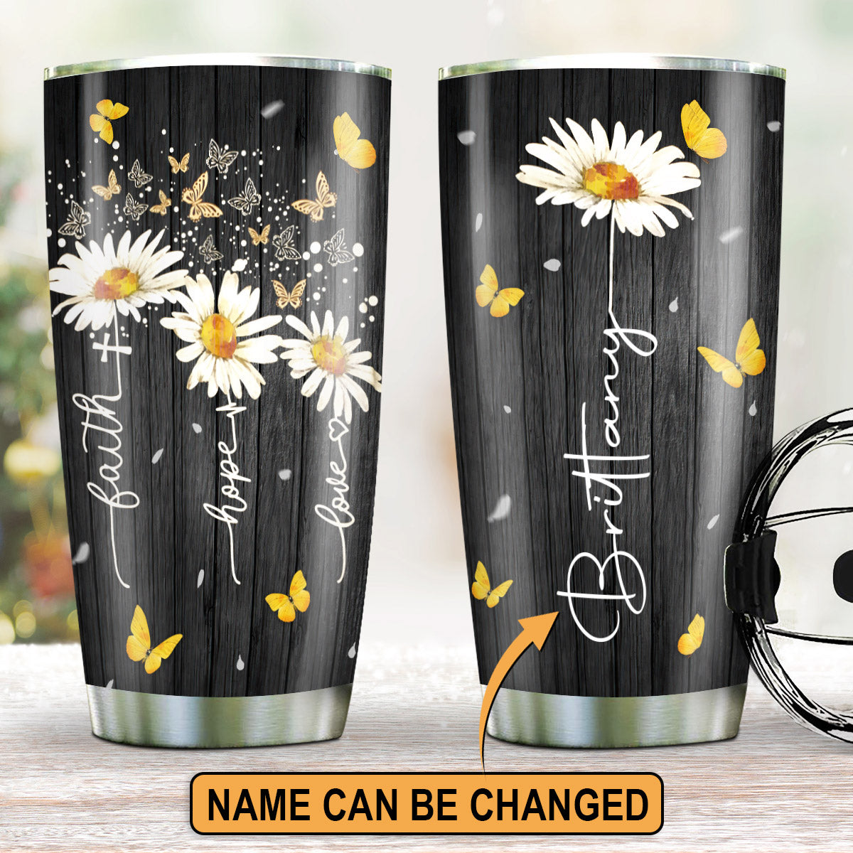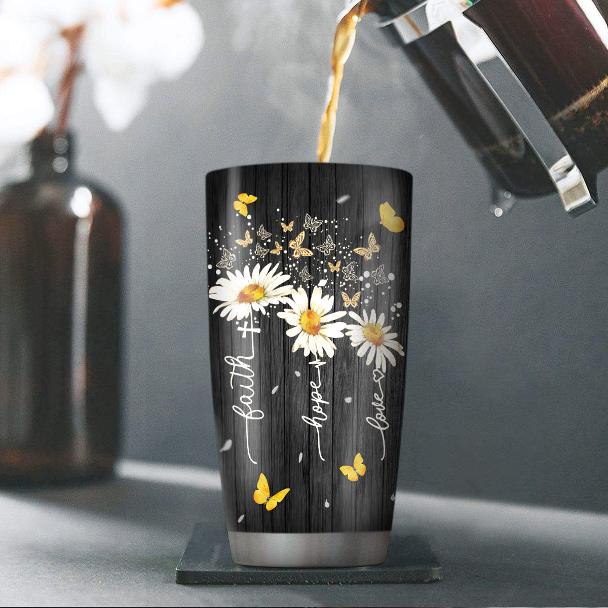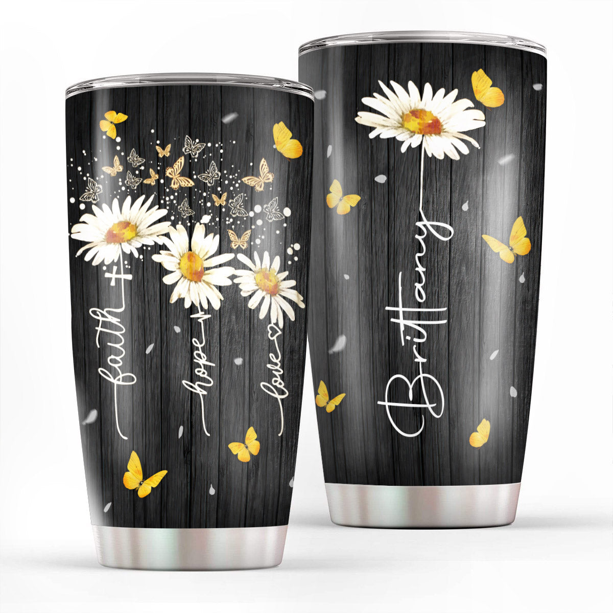 Lovely Personalized Daisy Stainless Steel Tumbler 20oz - Faith, Hope, Love HA211