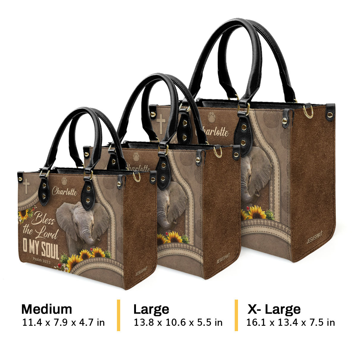 Lovely Personalized Elephant Leather Handbag - Bless The Lord O My Soul HN15