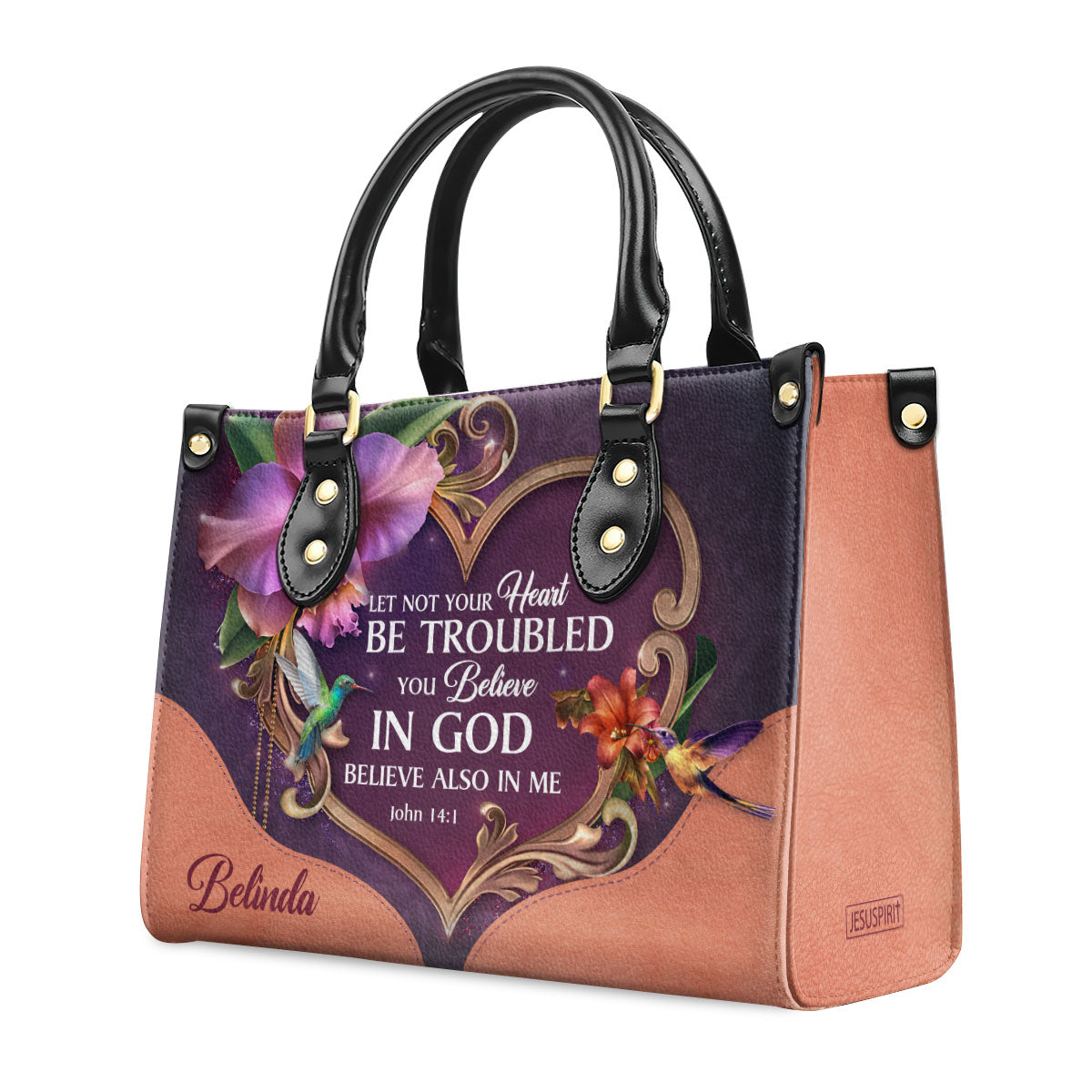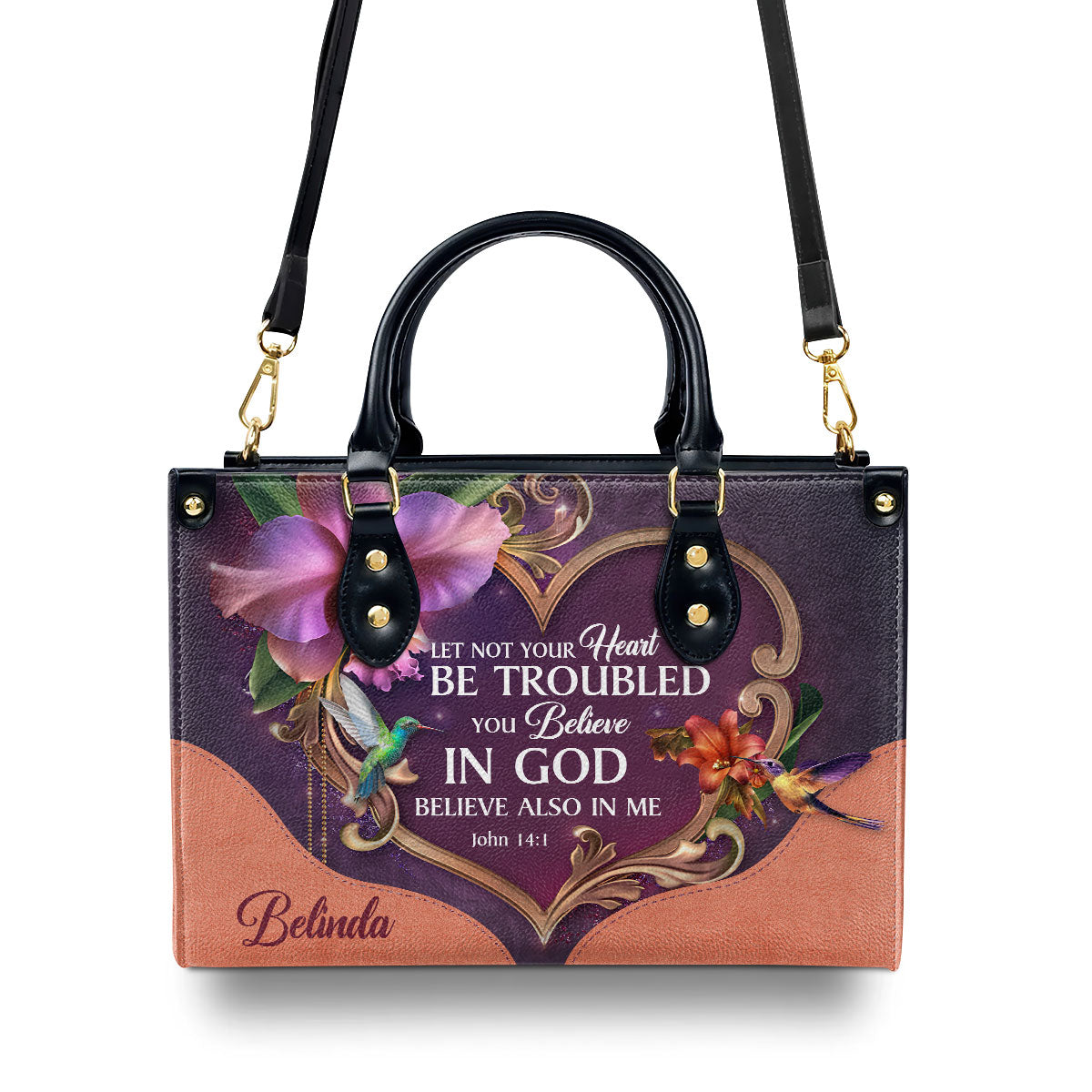 Lovely Personalized Leather Handbag - Let Not Your Heart Be Troubled NUM393