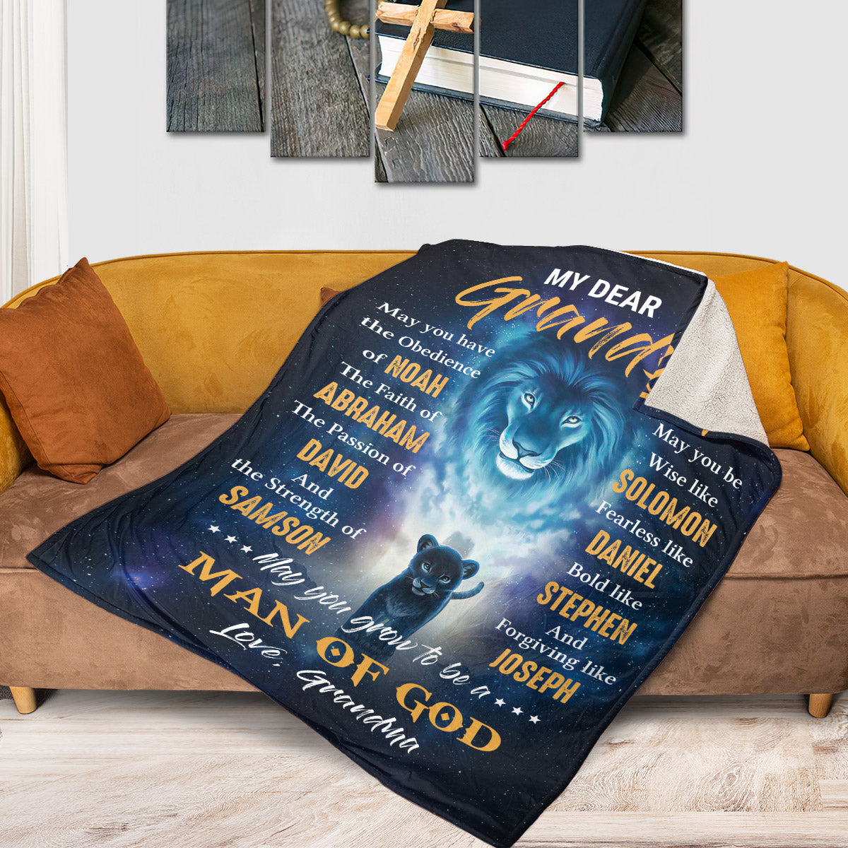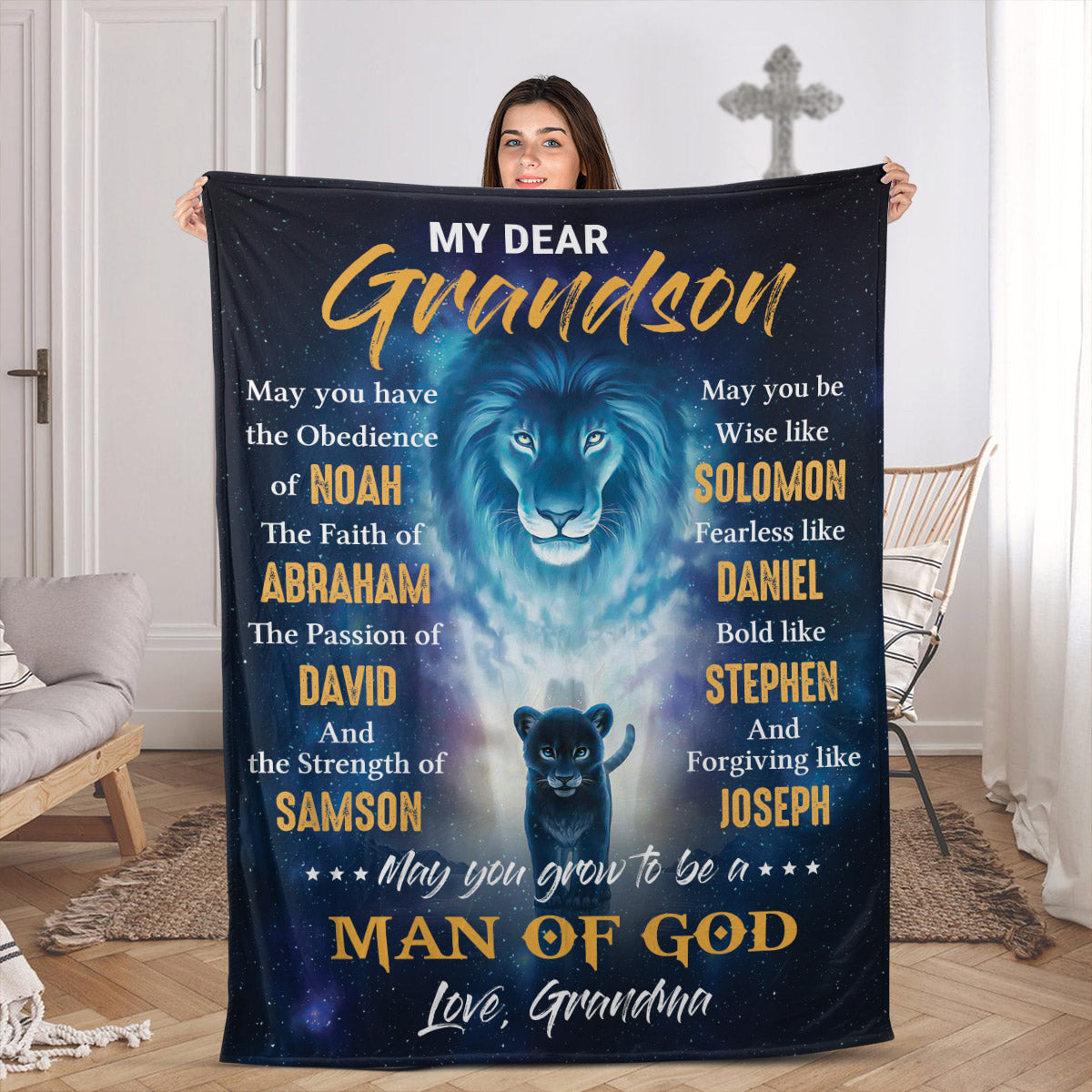 "My Dear Grandson - May you have the Obedience of Noah and Wise like Solomon" Christian Fleece Blanket is created by our Lifegifty designers that you couldn't find elsewhere.