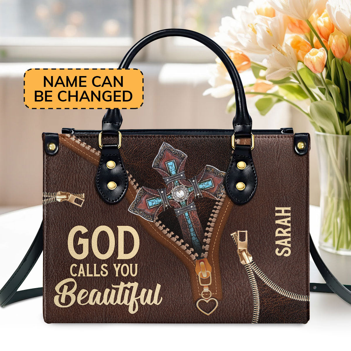 Must-Have Personalized Leather Handbag - God Calls You Beautiful M07