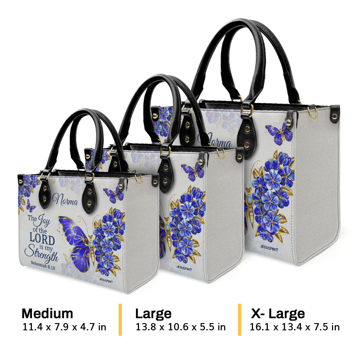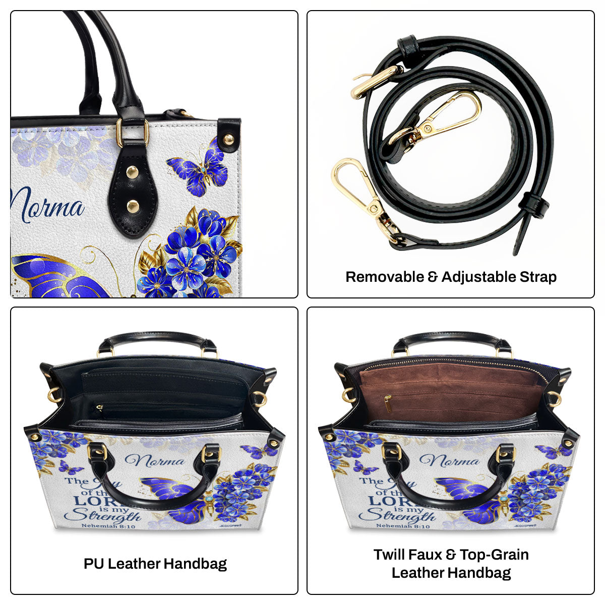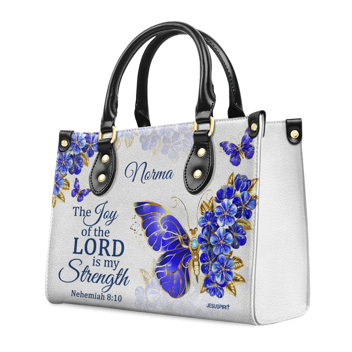 Nehemiah 8:10 | The Joy Of The Lord Is My Strength | Bible Verse Gifts For Christian Women | Personalized Leather Handbag With Handle LHBH743B