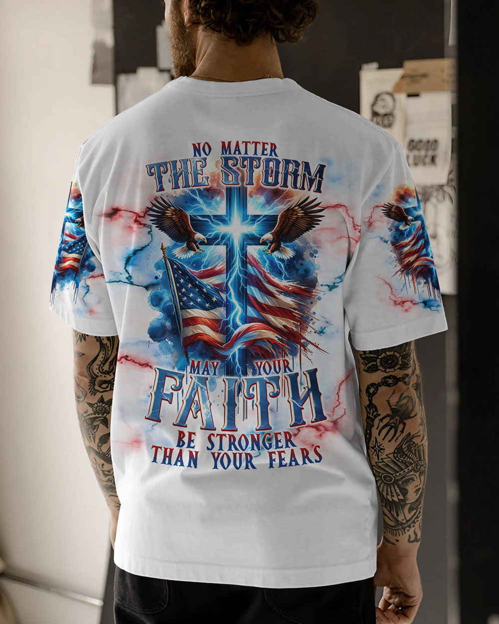 Embrace the powerful message of strength and faith with our No Matter The Storm Eagle Men's All Over Print Shirt. Featuring a majestic eagle and inspiring quote, this shirt serves as a reminder to rely on one's faith during life's storms. Let this shirt be a symbol of resilience and spiritual strength.