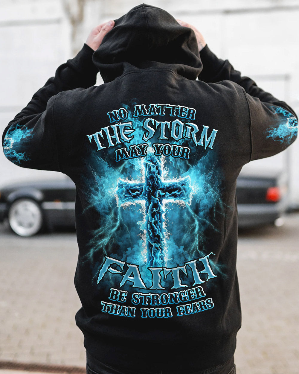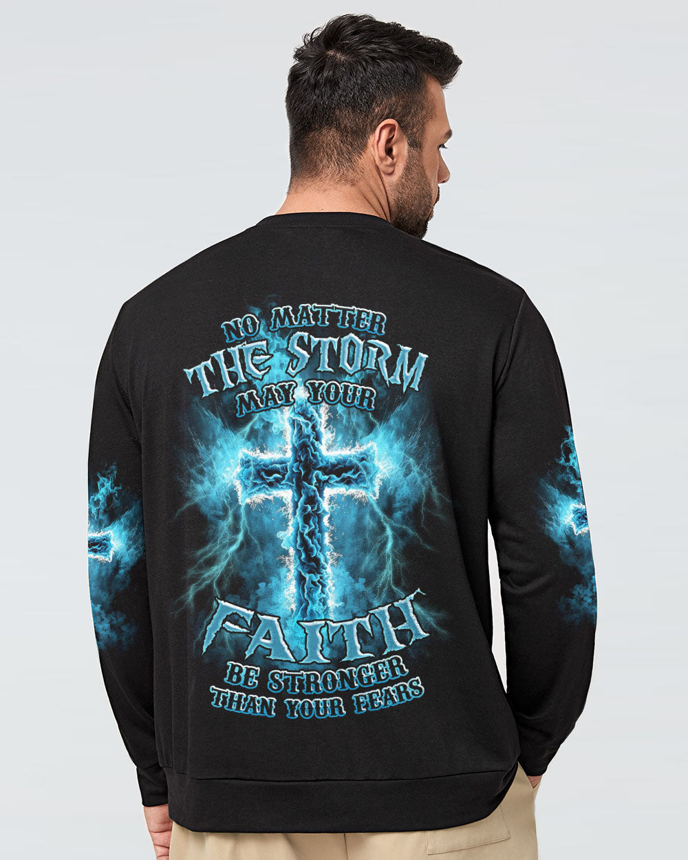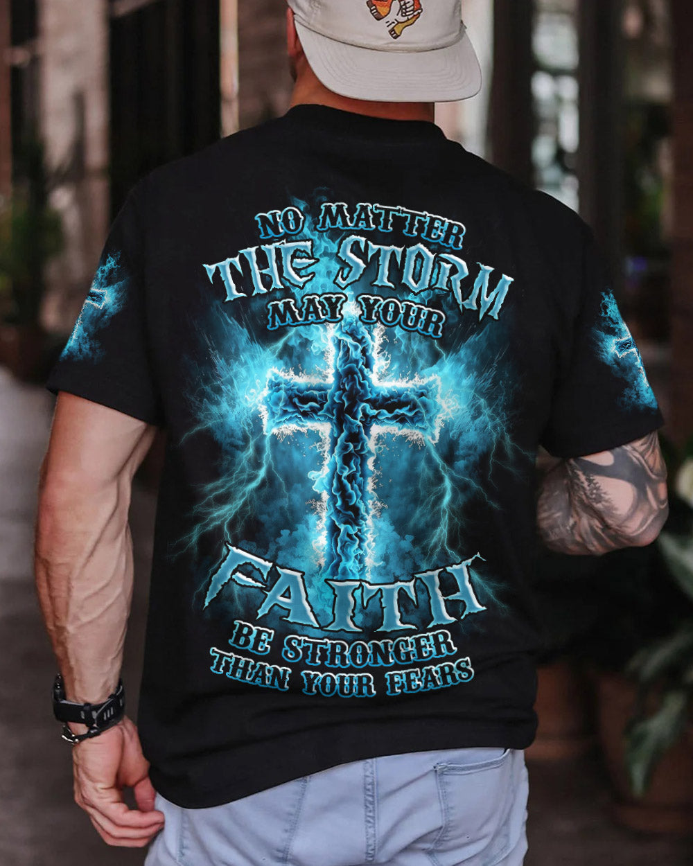 This No Matter The Storm Men's All Over Print Shirt showcases an elegant thunder cross design, reminding you to keep strong in your faith no matter the circumstances. The design features a motivating motto - "No matter the storm, may your faith be stronger than your fear" - to encourage you to stand firm in your beliefs. Crafted to last, this shirt is perfect for any occasion.