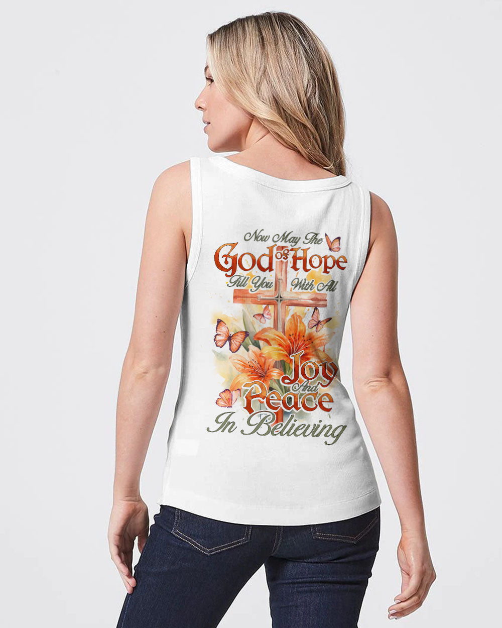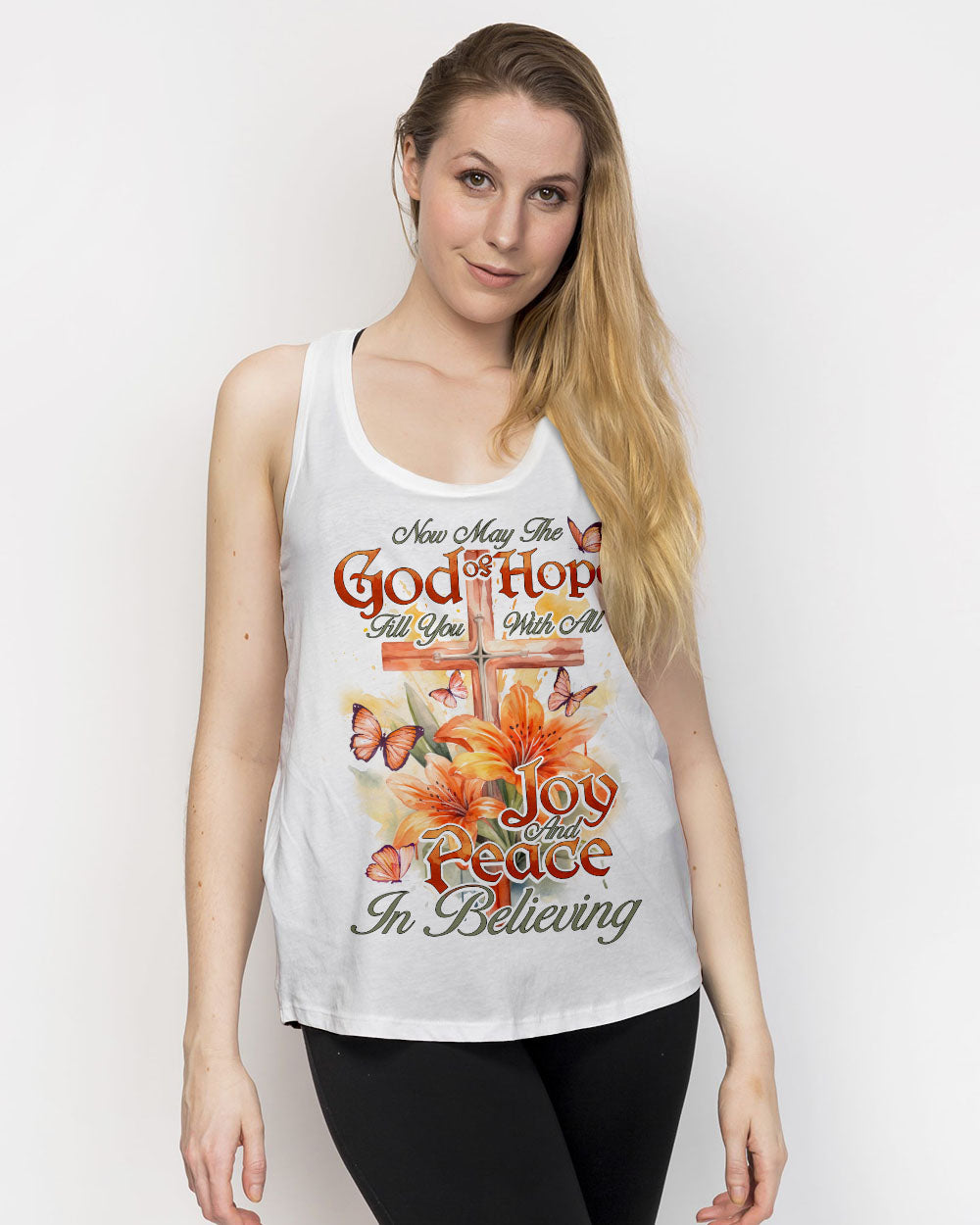Embrace your faith and show your beliefs with our beautiful Peace In Believing Women's All Over Print. Featuring crosses, lilies, butterflies, and an inspirational quote, this design is sure to spark inner joy, peace, and transformation. The intricately designed elements represent enduring hope and the everlasting joy that faith brings. Wear this meaningful Christian design with pride today.