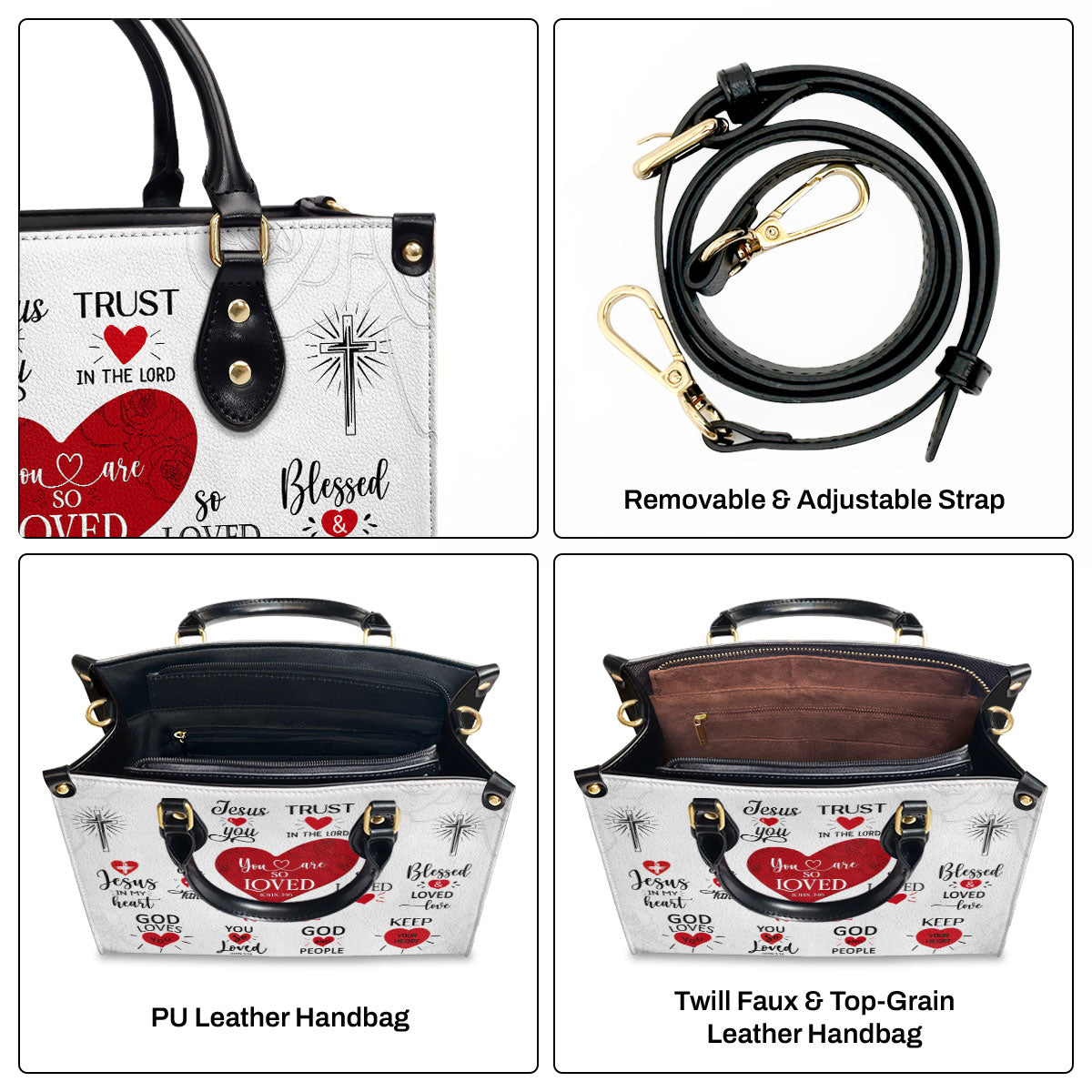 Personalized Leather Handbag With Handle | Romantic Religious Gifts For Christian Women | You Are So Loved LHBM708