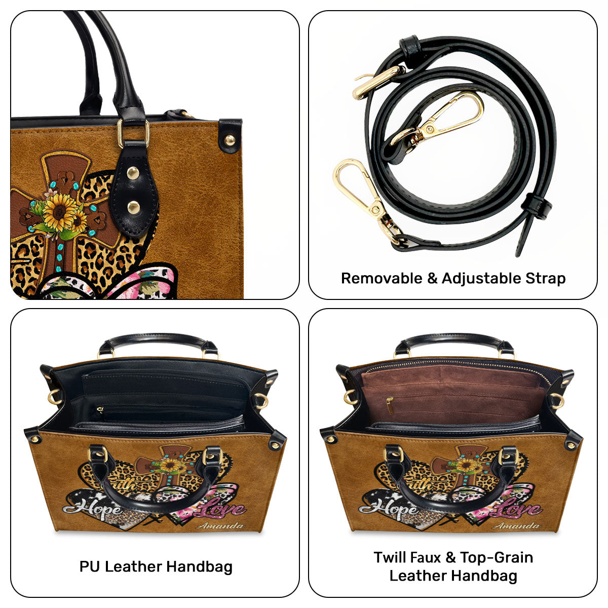 Personalized Leather Handbag With Zipper | Faith Hope Love LHBHN687