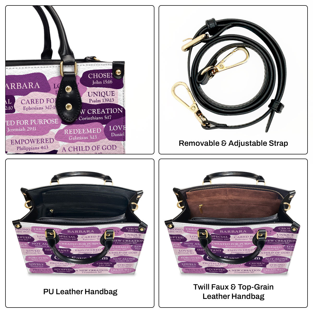 Personalized Zippered Leather Handbag | What God Says About You | Spiritual Gift For Worship Members LHBHN699