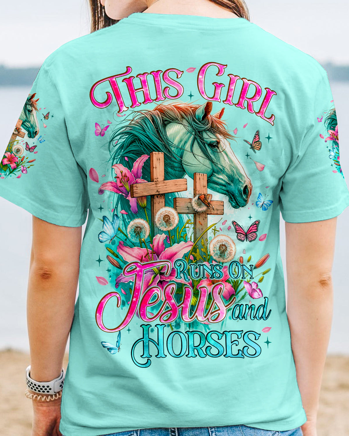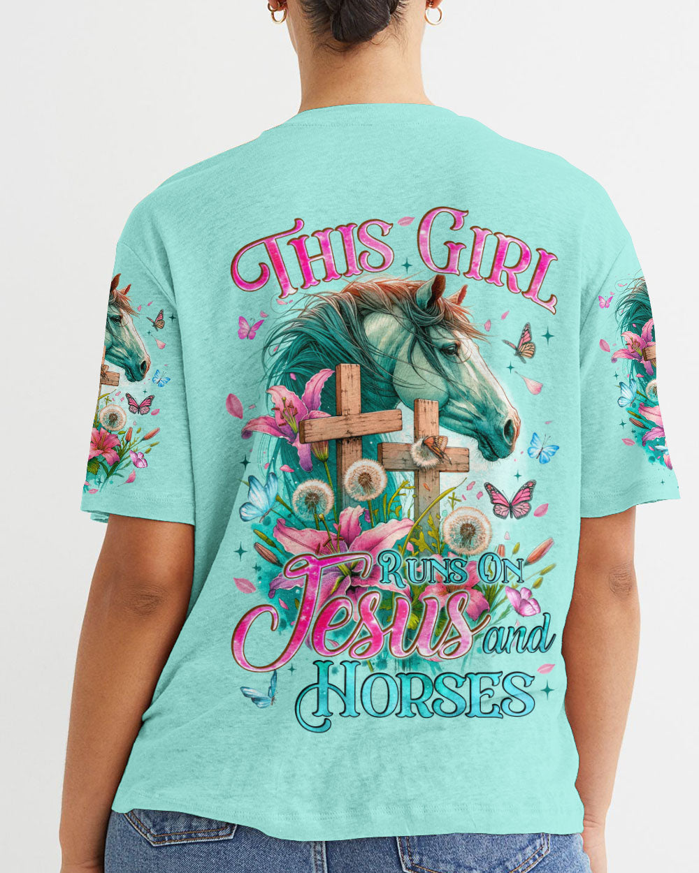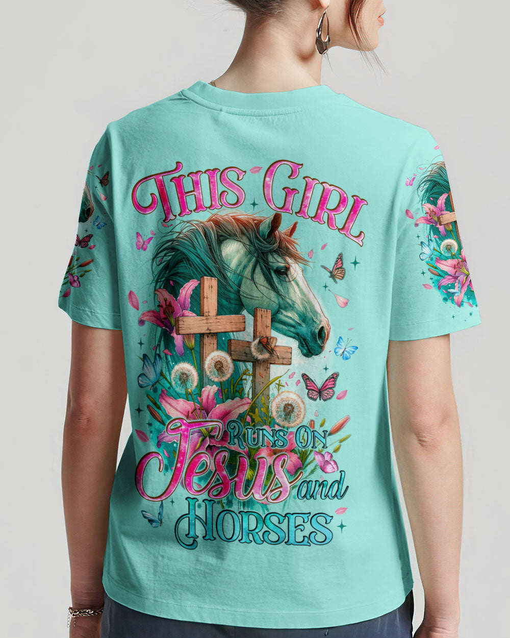 Runs On Jesus And Horses Women's All Over Print Shirt - Tyqy0912231