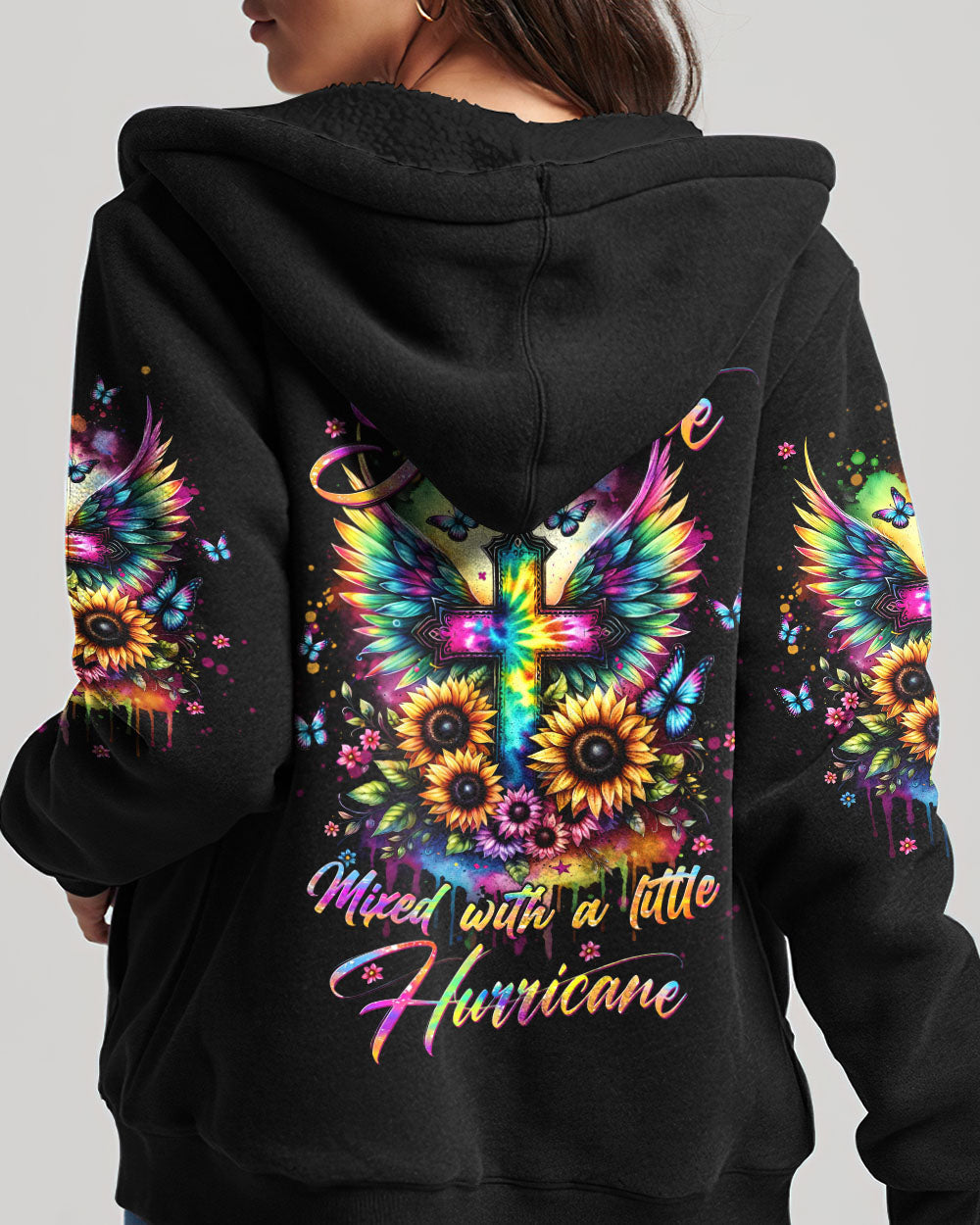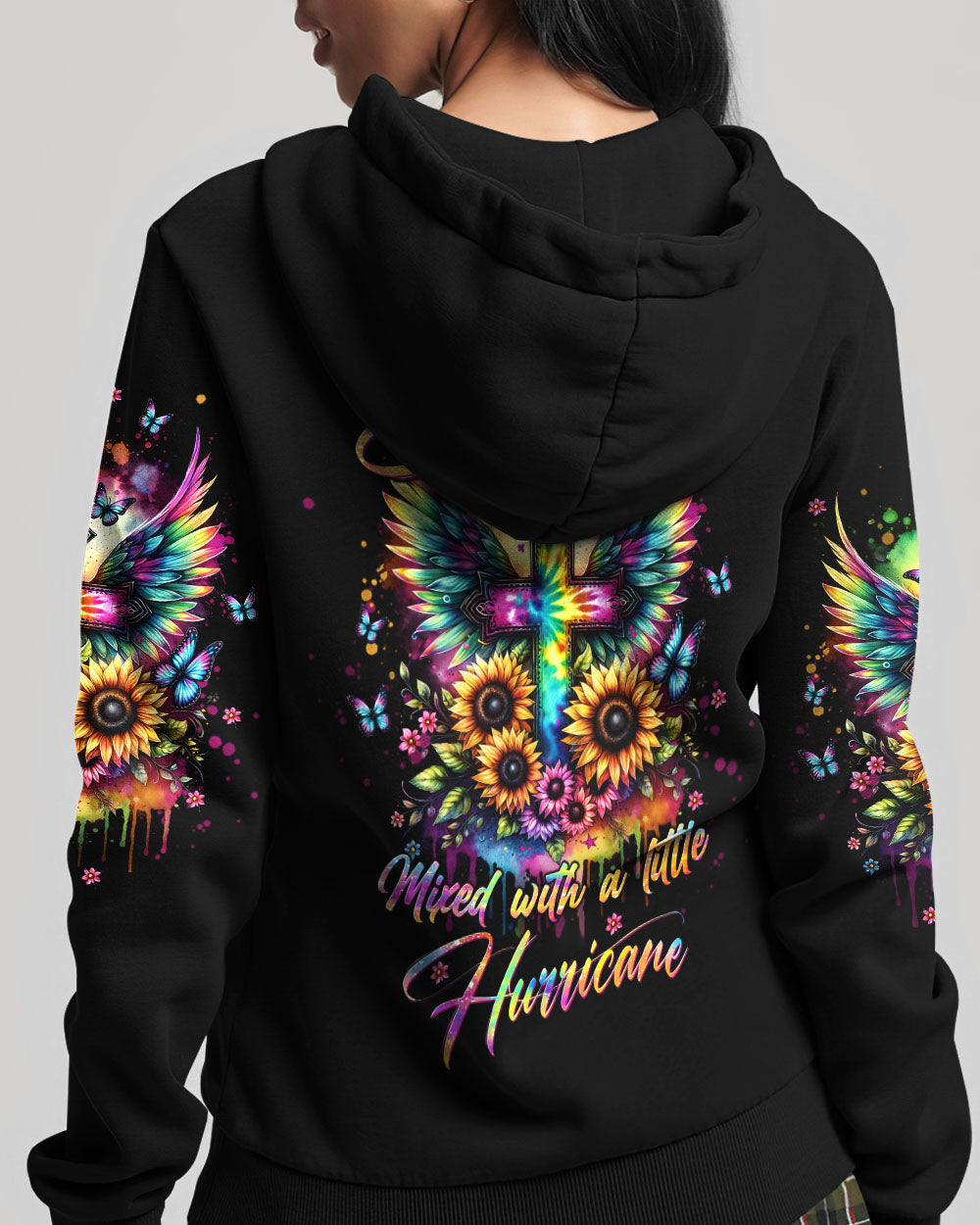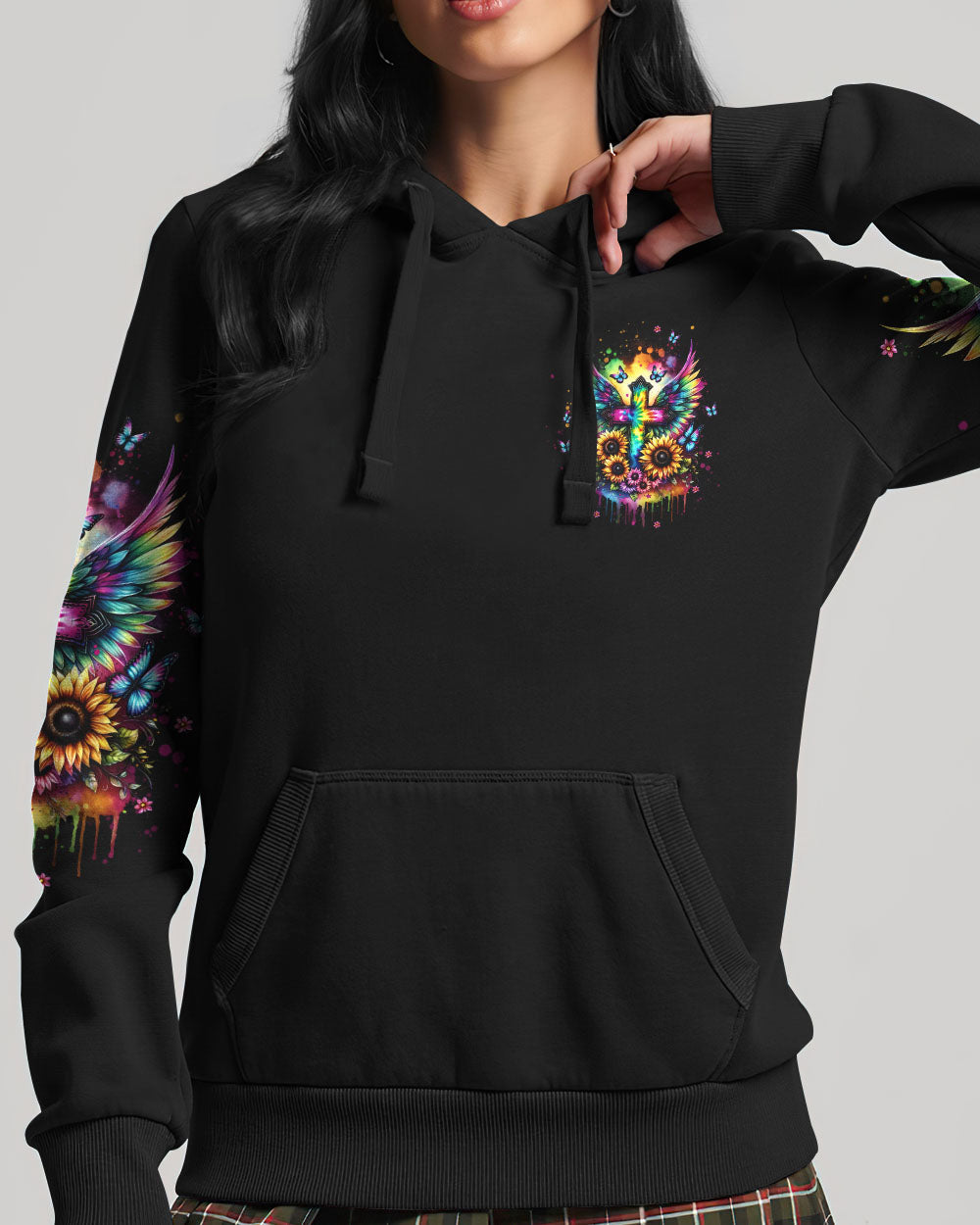 Unveil the radiance of your faith with our sacred cross design, featuring wings of strength and vibrant sunflowers. Embodying the spirit of "she is sunshine mixed with a little hurricane," this design celebrates a personality infused with the warmth of sunshine and the unwavering strength of a hurricane. It stands as a testament to a proud and passionate love for Jesus that shines brightly through life's storms.