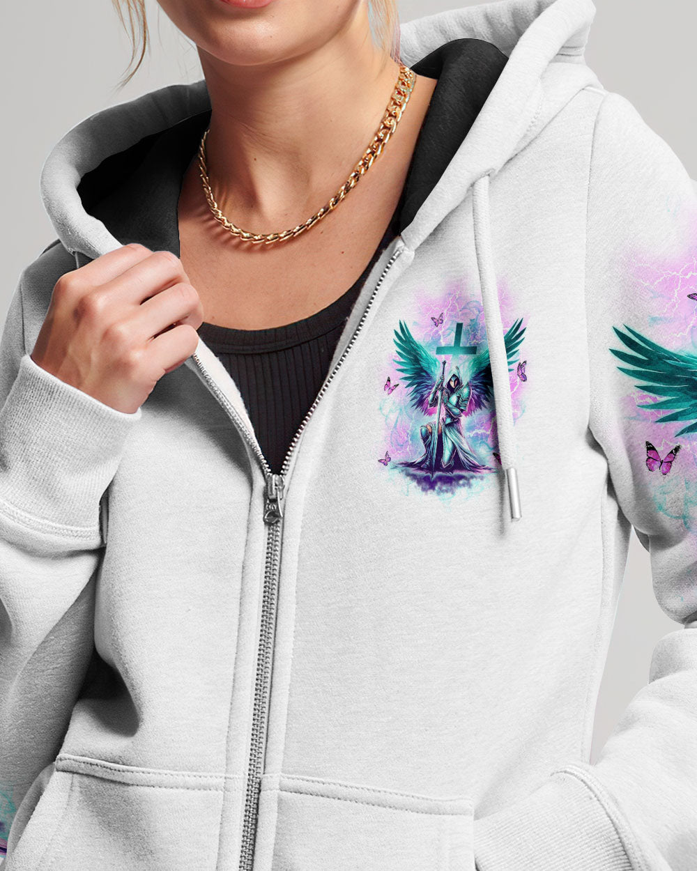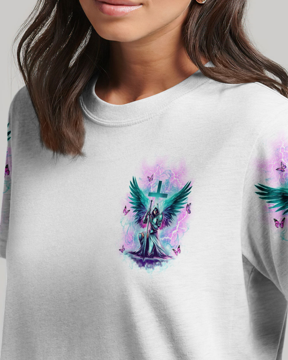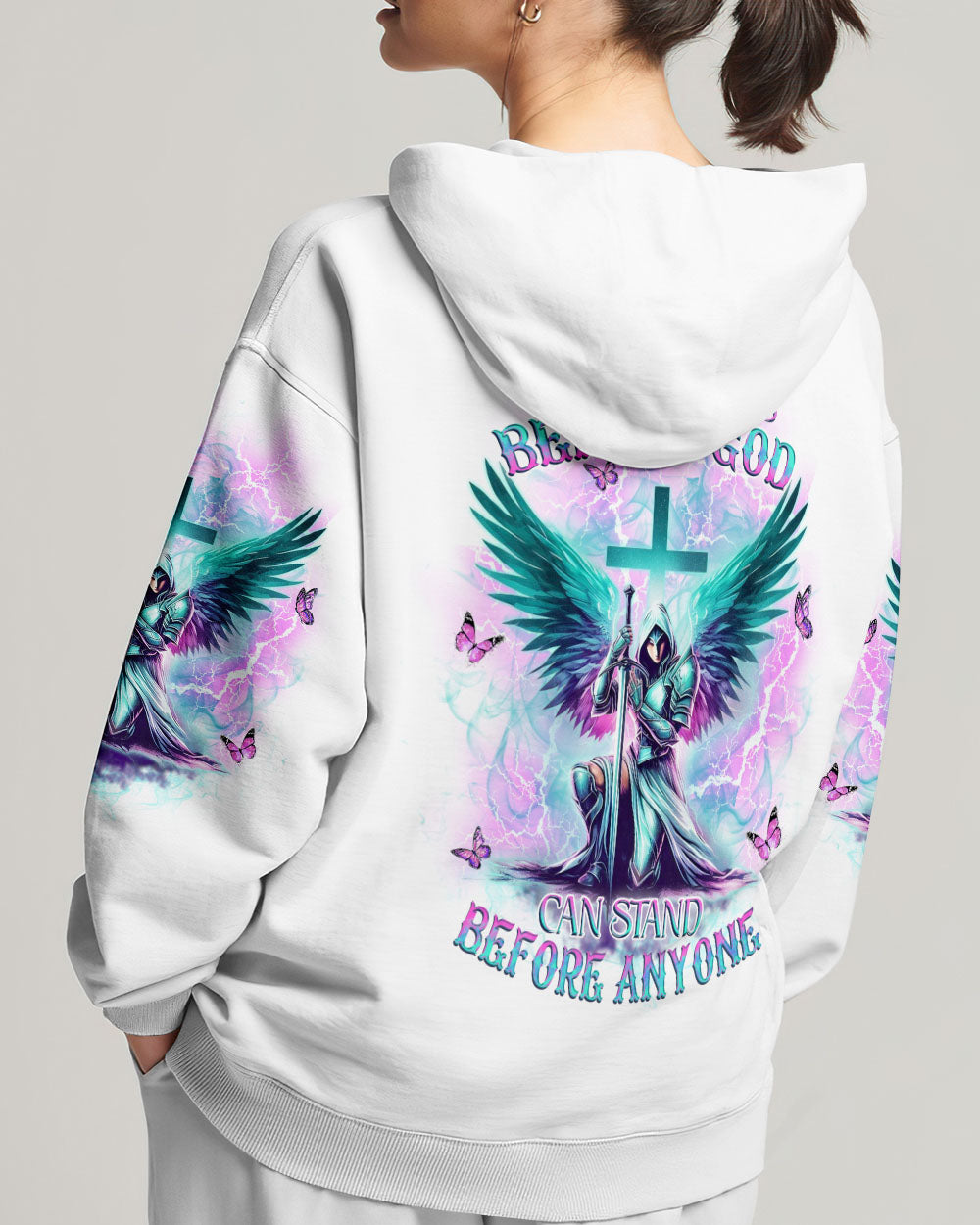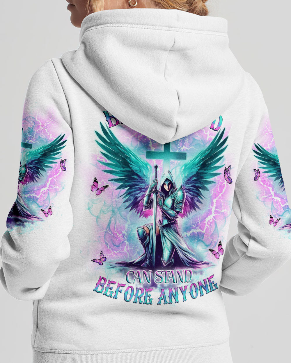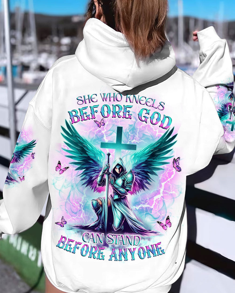 Step into divine strength with our Faith Christ Design. The empowering quote, "She who kneels before God can stand before anyone," encapsulates resilience and spiritual fortitude. More than clothing, it's a wearable testament to the unyielding power of faith. Radiate strength and grace – order now and let your style speak volumes about the warrior within!
