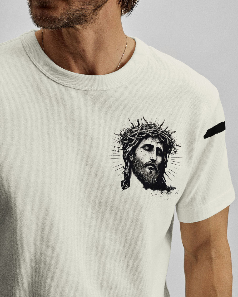 Adorn yourself with the uplifting image of Jesus and powerful inspirational quote found on this Men's All-Over Print Shirt. Encouraging hopefulness and faith, this eye-catching design serves as a reminder of the strength we can find within ourselves to overcome any obstacle. An inspiring symbol of the power of faith in Christianity.