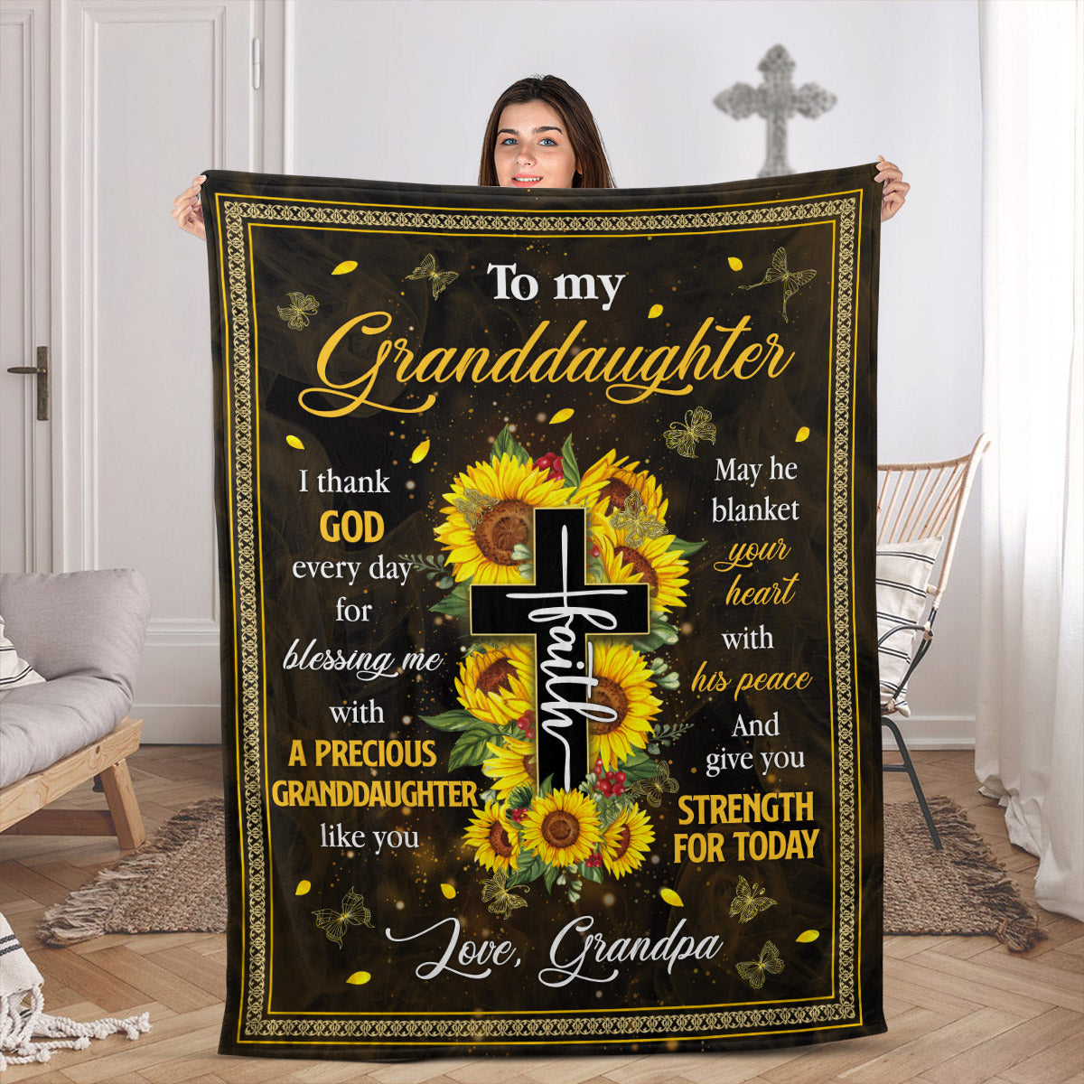 "To My Granddaughter - I Thank God Every Day For Blessing Me With A Precious Granddaughter Like You" Christian Fleece Blanket is created by our Lifegifty designers that you couldn't find elsewhere.