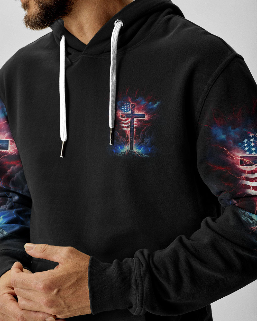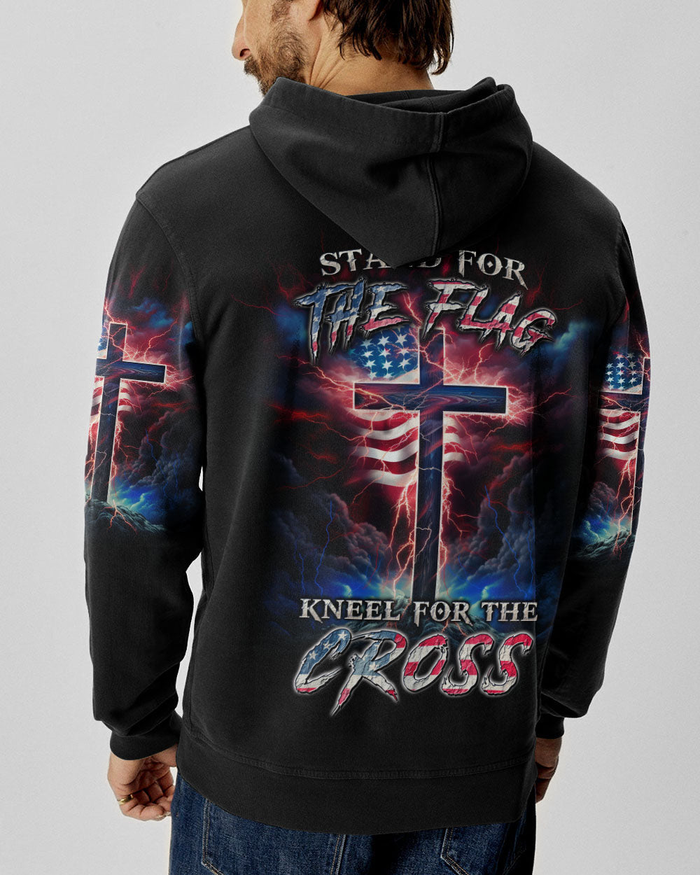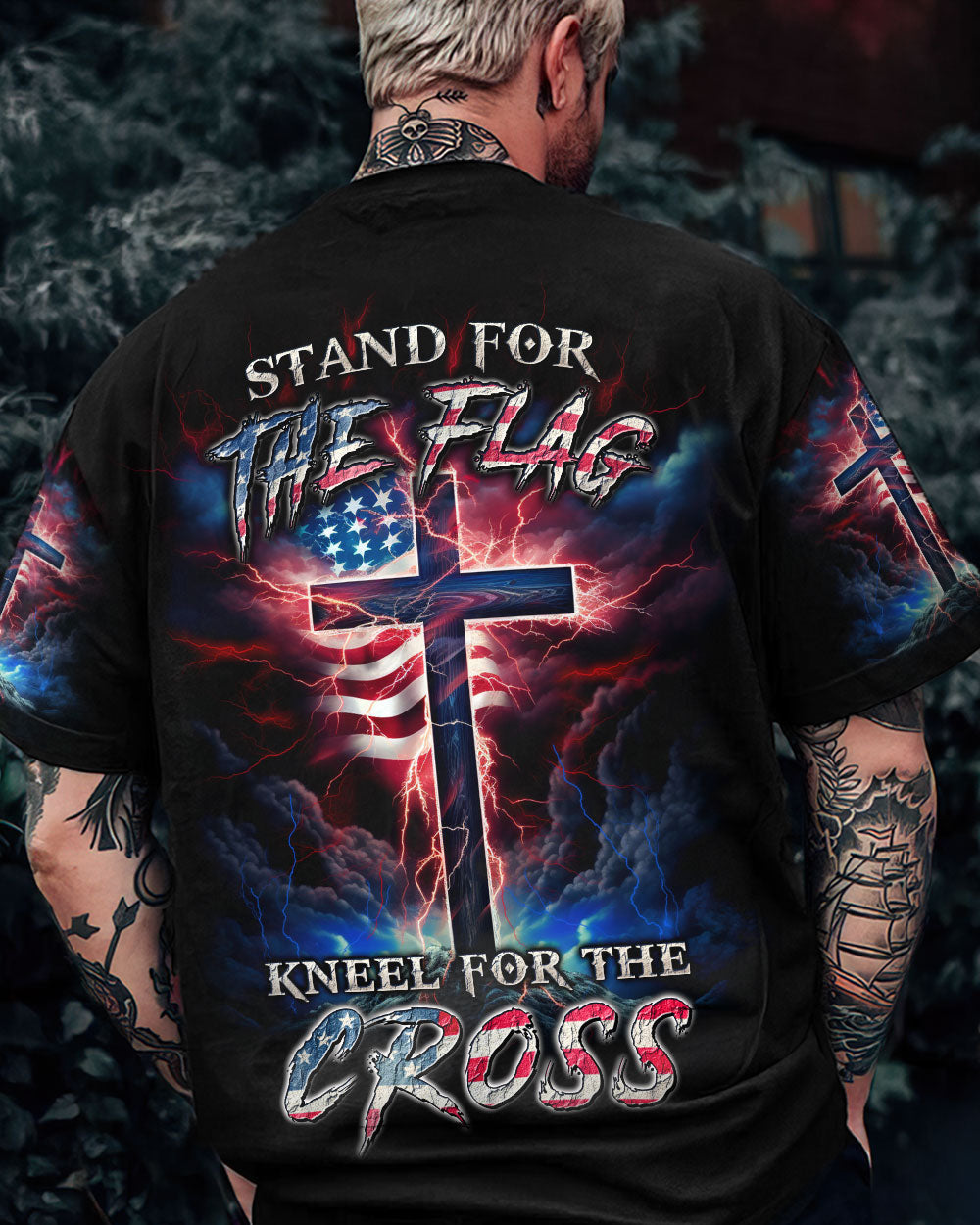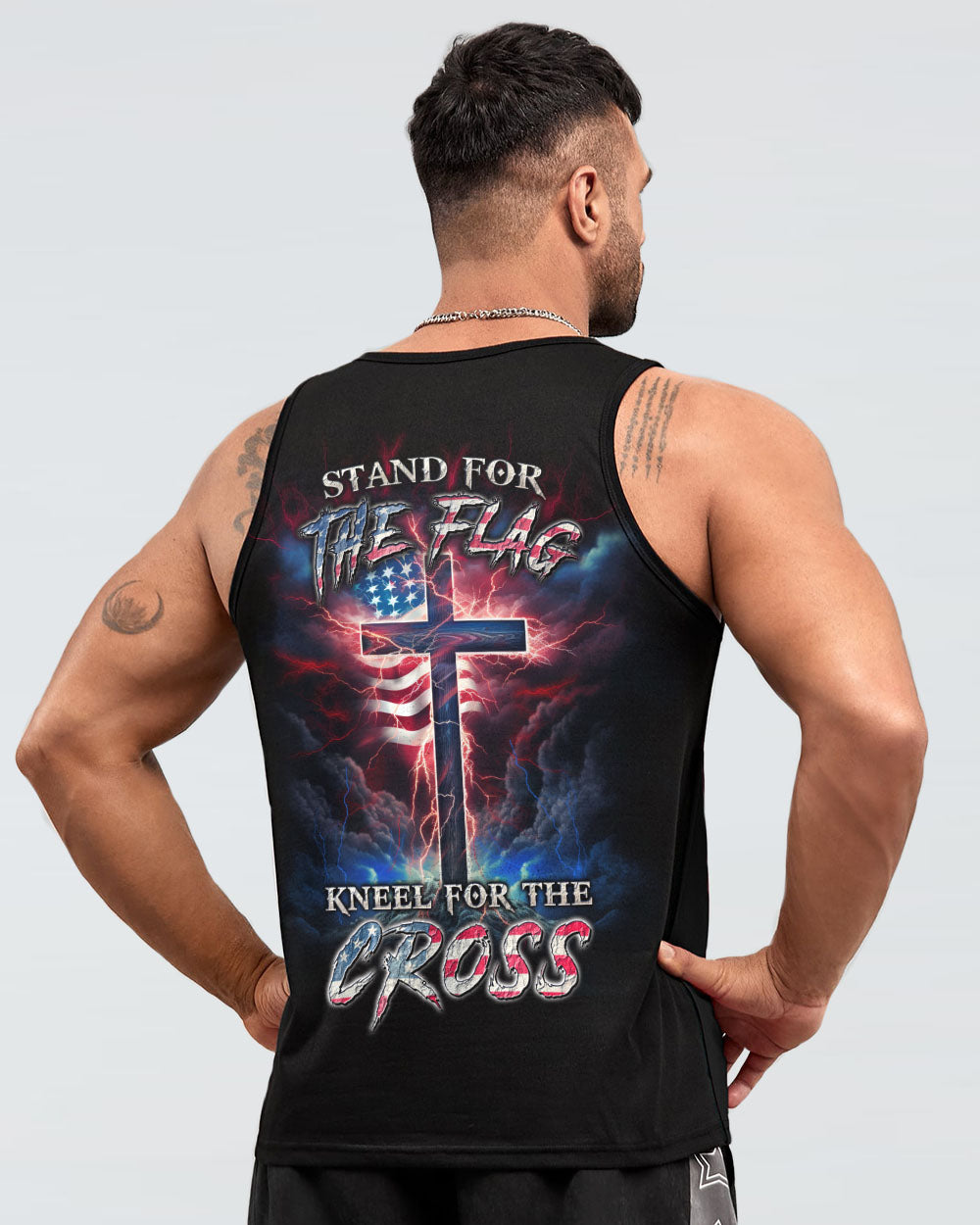 Courageously represent faith and country in our Stand For The Flag Kneel For The Cross Men's All Over Print. Carefully crafted with attention to detail, this design is a symbol of unwavering belief and love for your nation. Show off your patriotism and spiritual joy with this unique fusion of faith and country. Wear your beliefs, and join others in standing strong for freedom, unity and faith.