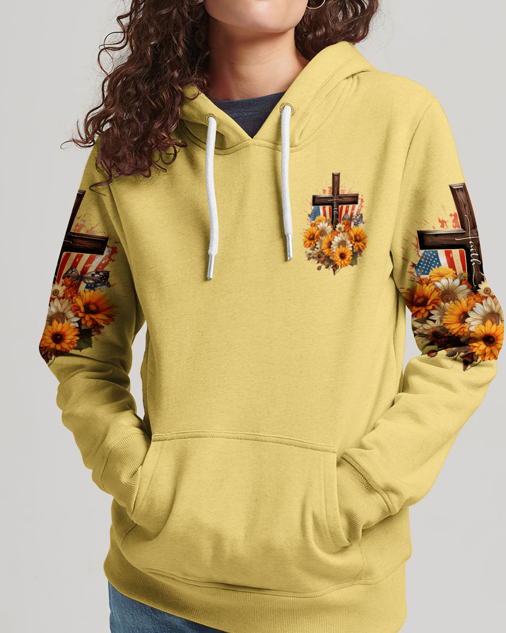 Show your patriotism and piety with the Stand For The Flag Kneel For The Cross Women's All Over Print Shirt - Tlnz0607233. It powerfully conveys the idea that faith and loyalty can be practiced side-by-side with its full bloom floral cross and American flag. The shirt's message, "Stand For The Flag Kneel For The Cross," reminds us to respect our country and stay devoted to our beliefs.