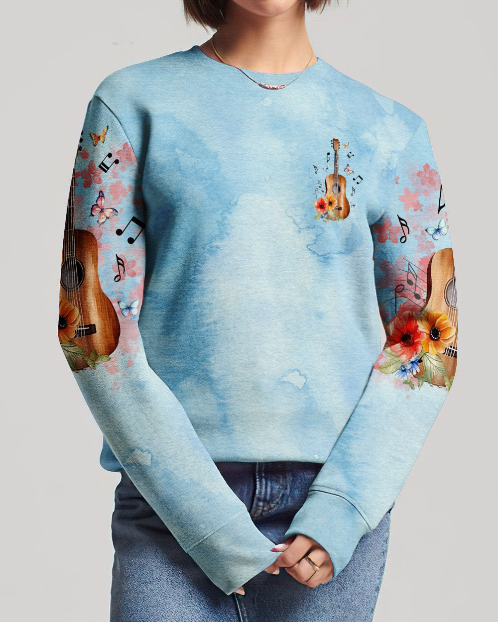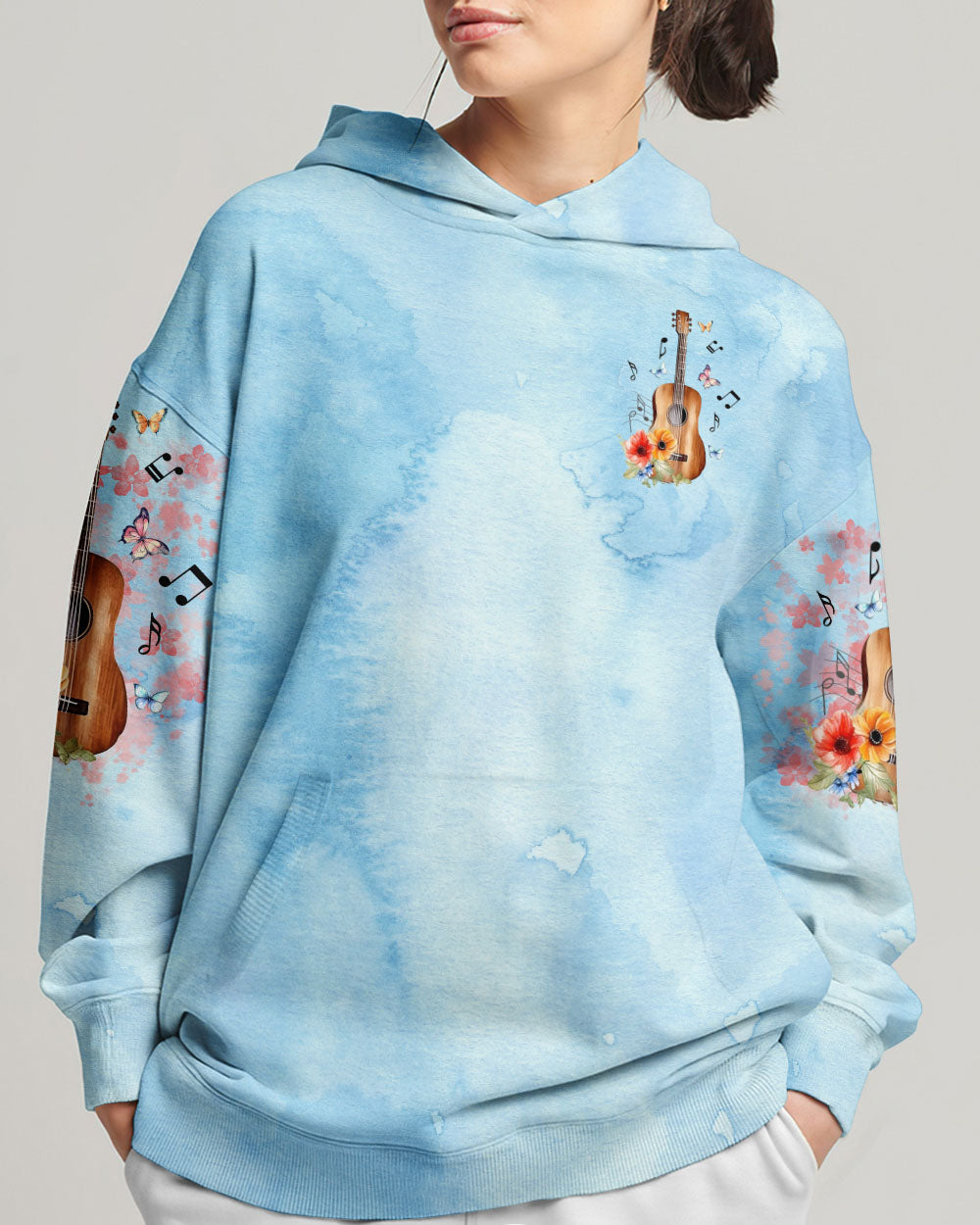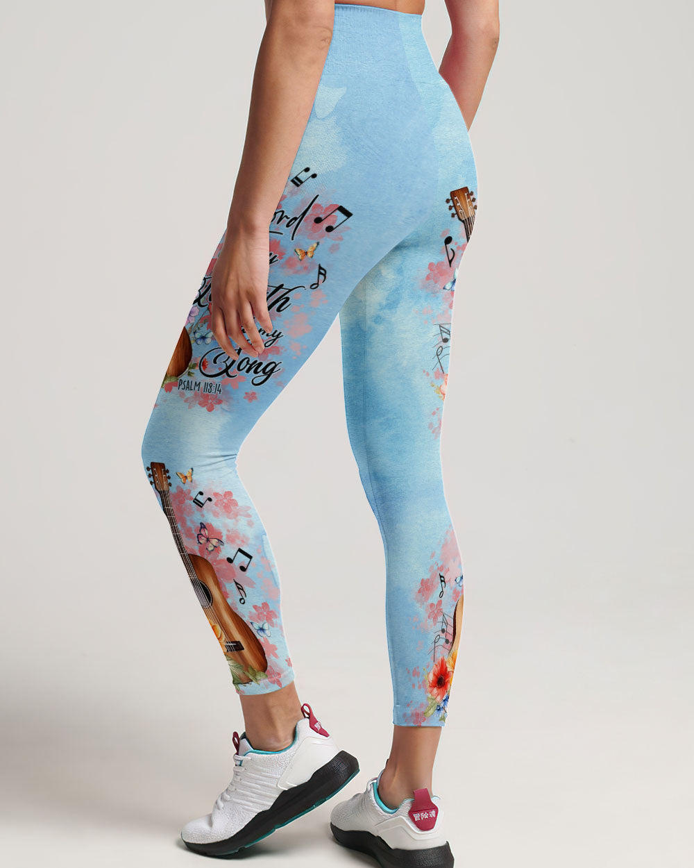 Express your faith and your passion for music with this all-over print shirt. Featuring a guitar adorned with blooming flowers and the saying, "The Lord Is My Strength and my song," it conveys strength and inspiration found in God. A perfect blend of faith and music, this shirt is a powerful testament to the profound role of faith in one's life.