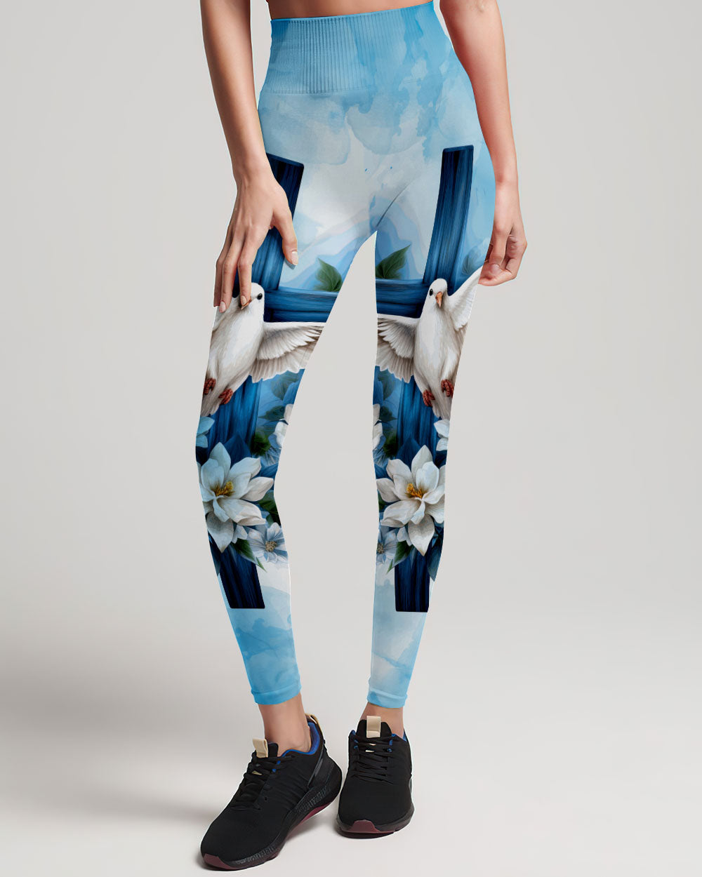 Unveil a design blending sacred symbols and nature's grace, embodying Christian beliefs. The cross, a redemption emblem, blooms with intricate flowers mirroring faith's growth. The peaceful dove adds elegance. Scriptural words, "The Lord will fight for you, and you shall hold your peace," echo unwavering faith's strength and serenity. Discover faith and nature's harmony today.