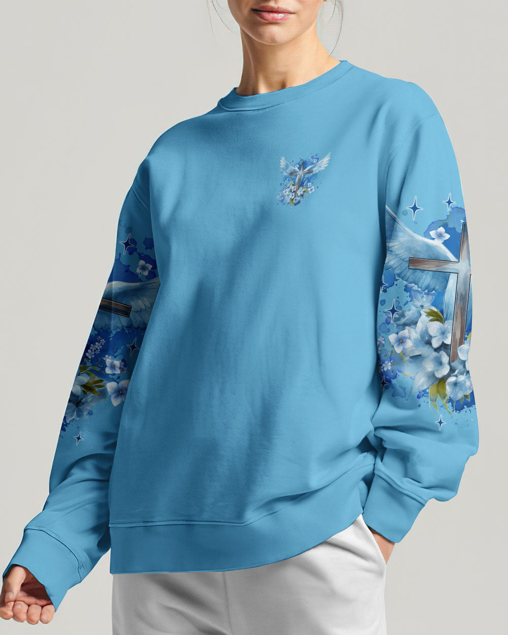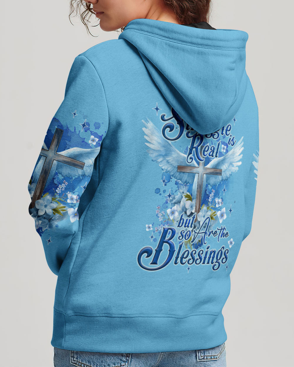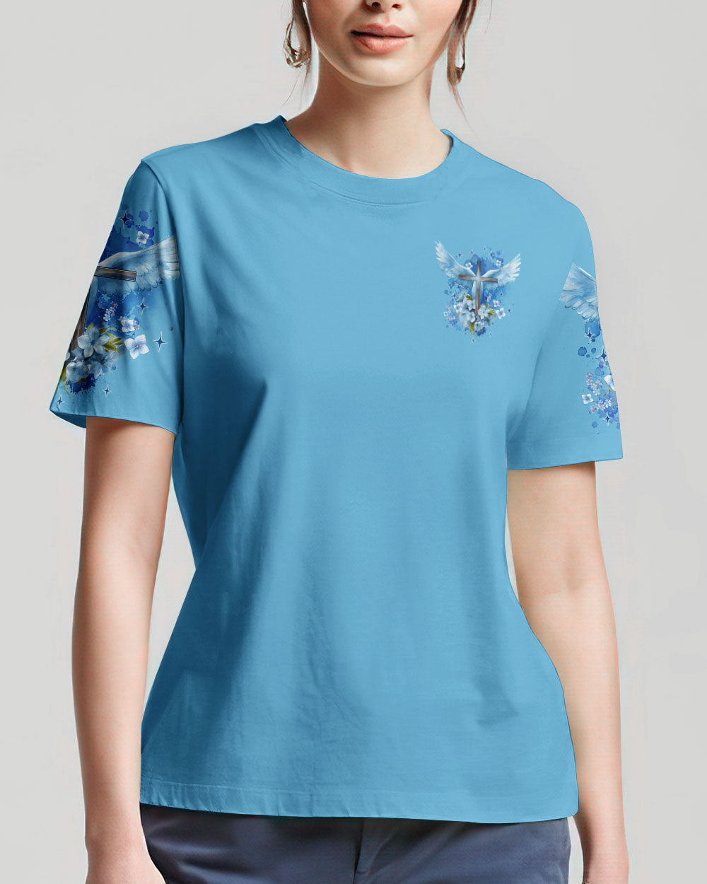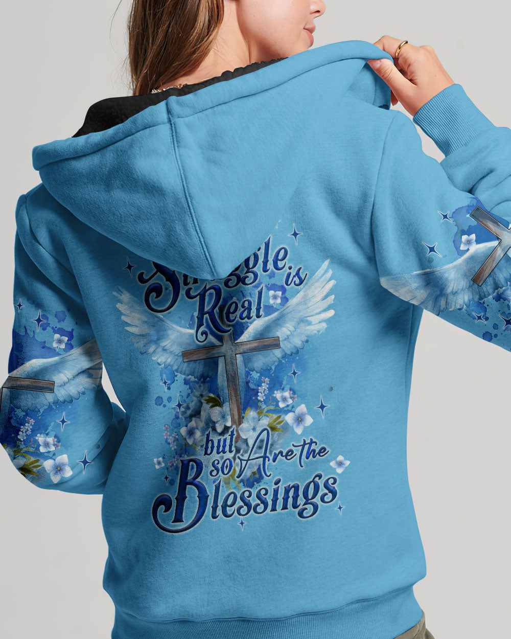 This Struggle is Real Women's All Over Print Shirt displays an inspiring message of faith and strength with its tranquil image of a cross adorned with flowers and angelic wings. Let this powerful design be a reminder of blessings, even through life's struggles, and be inspired on your spiritual journey.