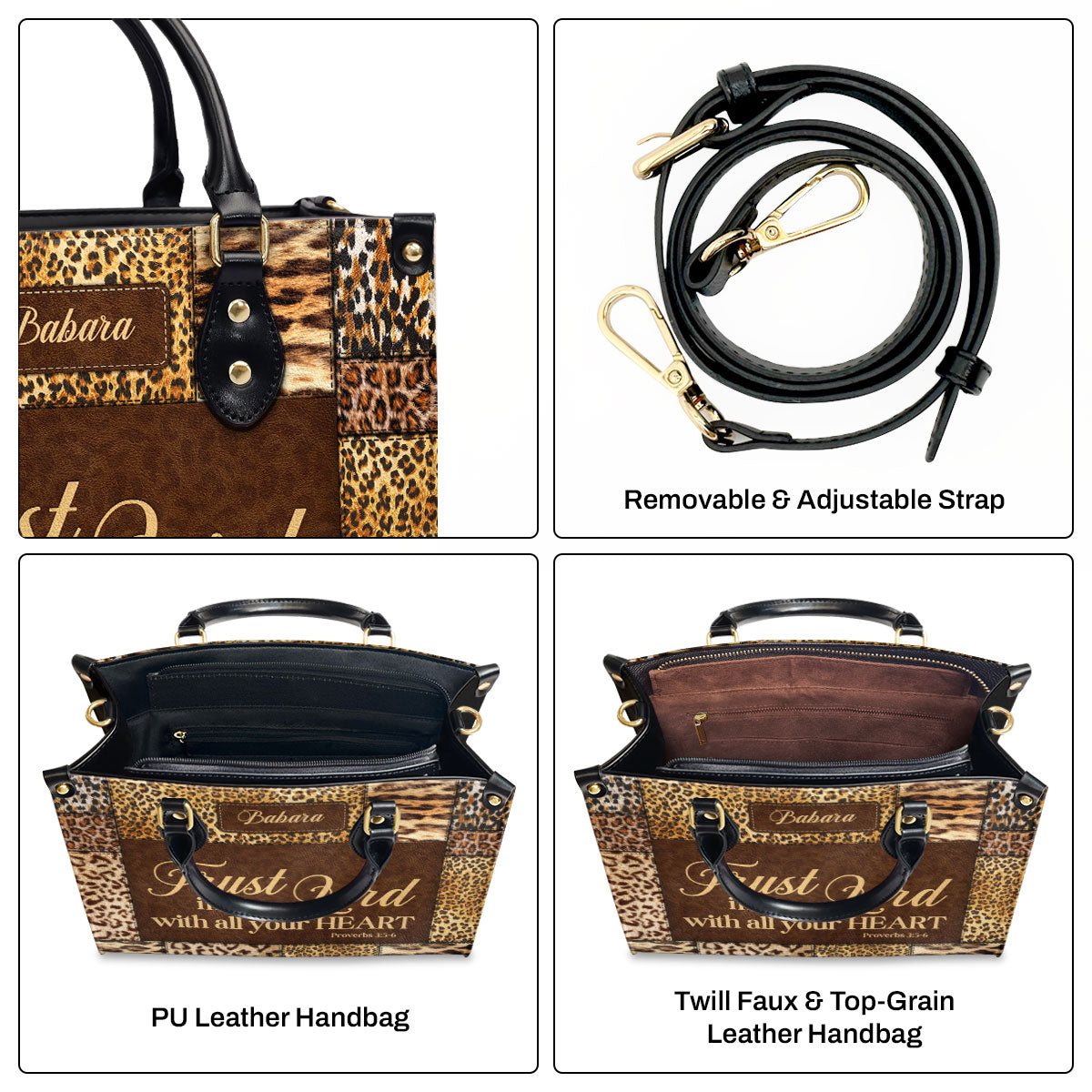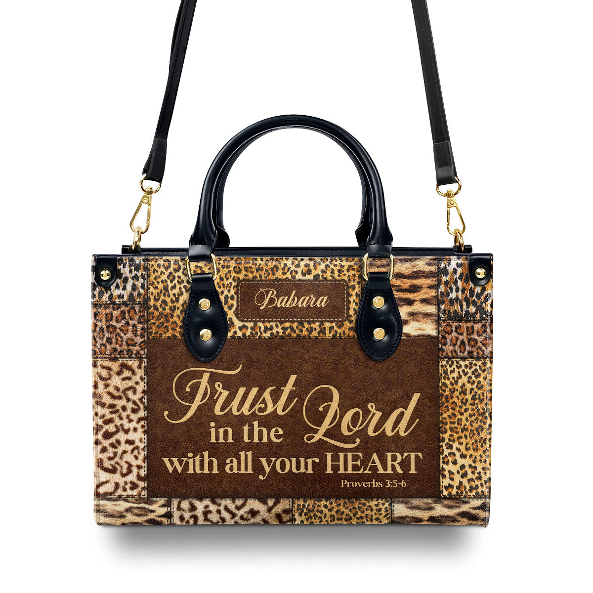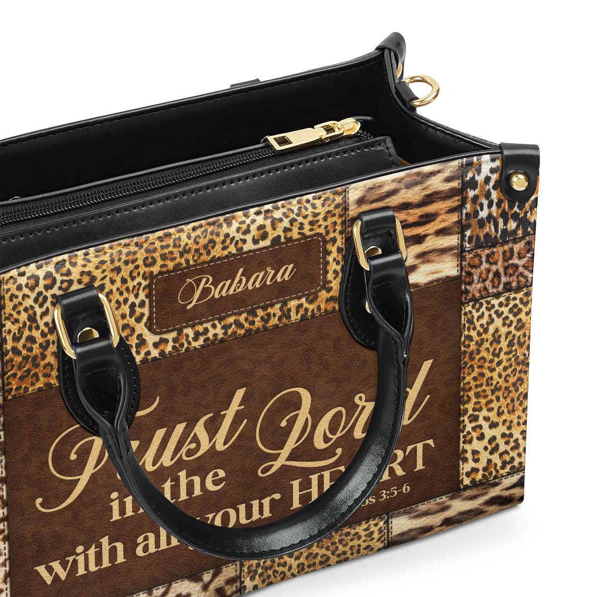 Trust In The Lord With All Your Heart | Proverbs 3:5-6 | Personalized Zippered Leather Handbag | Psalm 31:24 | Inspirational Gift For Her LHBHN806