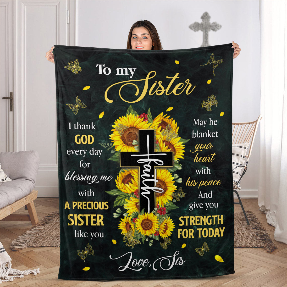 "To My Sister - I Thank God Every Day For Blessing Me With A Precious Sister Like You" Christian Fleece Blanket is created by our Lifegifty designers that you couldn't find elsewhere.
