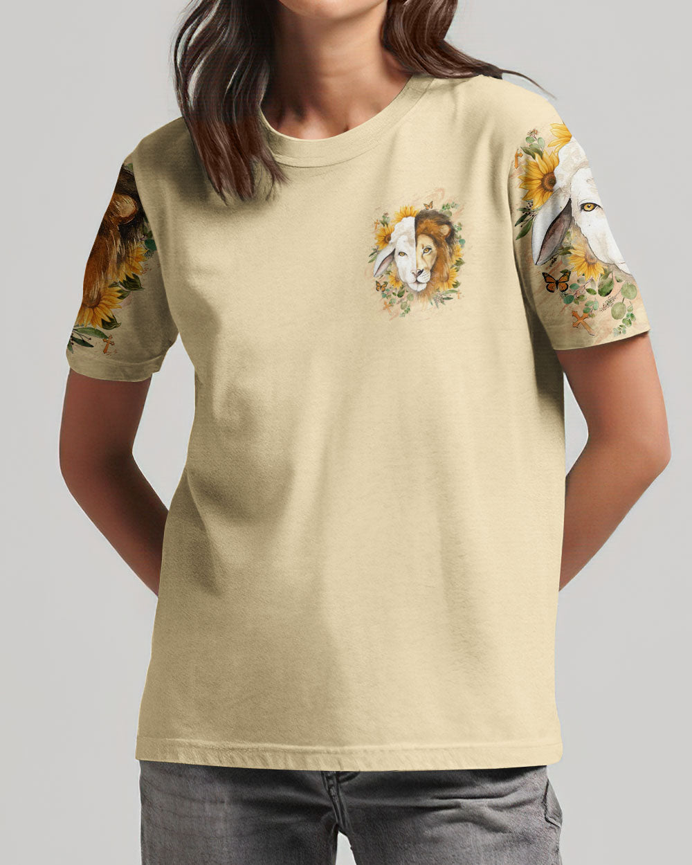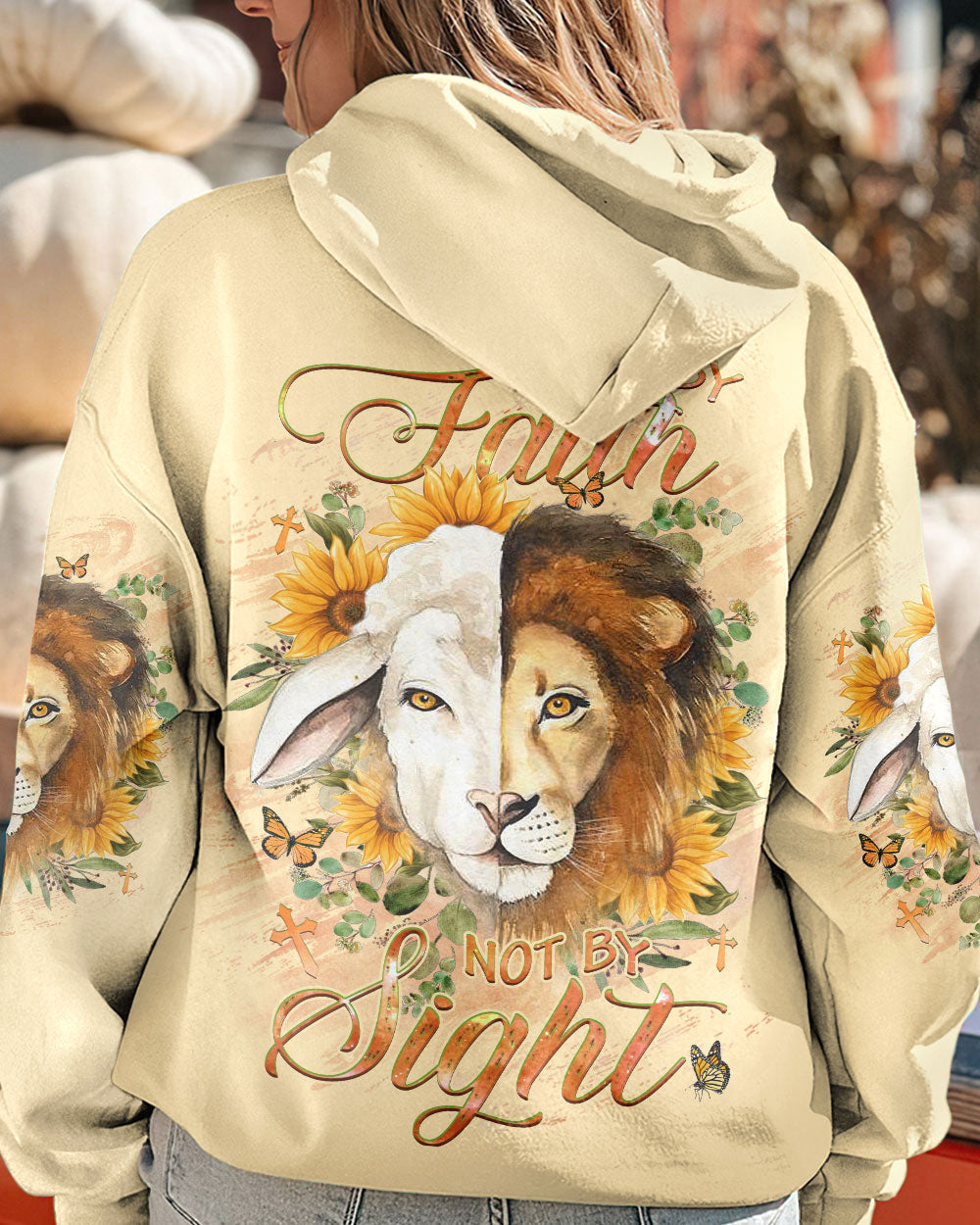 Embrace the power of faith with our breathtaking design! Imagine a majestic watercolor scene featuring the lion and lamb, peacefully surrounded by vibrant sunflowers and elegant crosses. The quote, "Walk by faith, not by sight," captures the essence of unwavering belief and trust in divine guidance. If you're in search of a piece that beautifully portrays the strength of faith, this design is your source of inspiration. Seize the chance to wear a symbol of hope and spirituality.