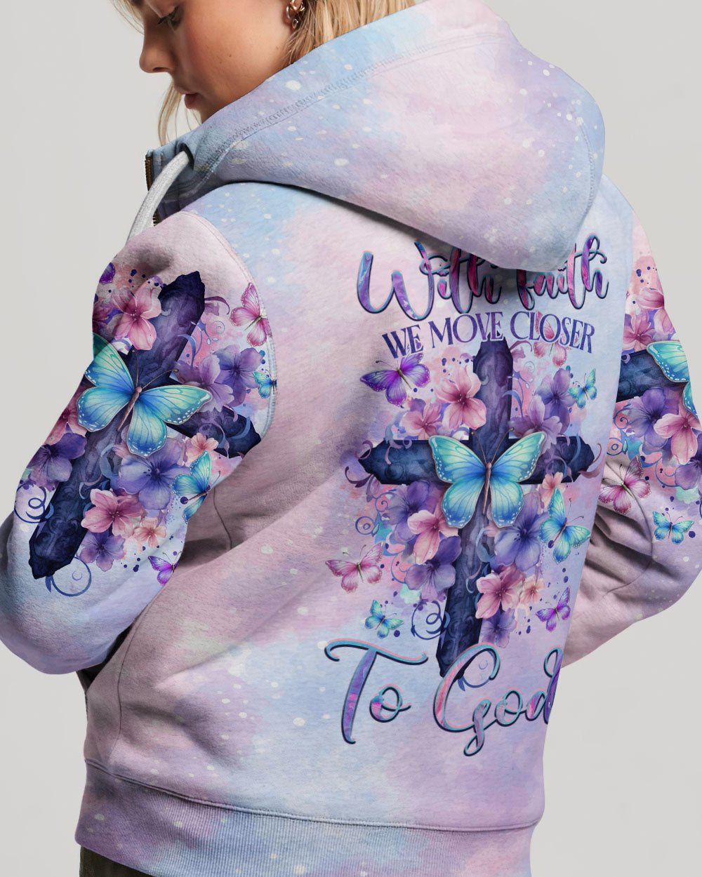 Meet our exquisite cross design, adorned with delicate pastel flowers. This design beautifully conveys the message, "faith draws us nearer to God." It symbolizes how faith acts as a bridge connecting us to a higher spiritual realm, akin to the cross, a symbol of devotion and divine connection. Let this design serve as a reminder that faith paves the way to spiritual closeness, while the blossoming flowers represent the beauty and growth stemming from unwavering belief.