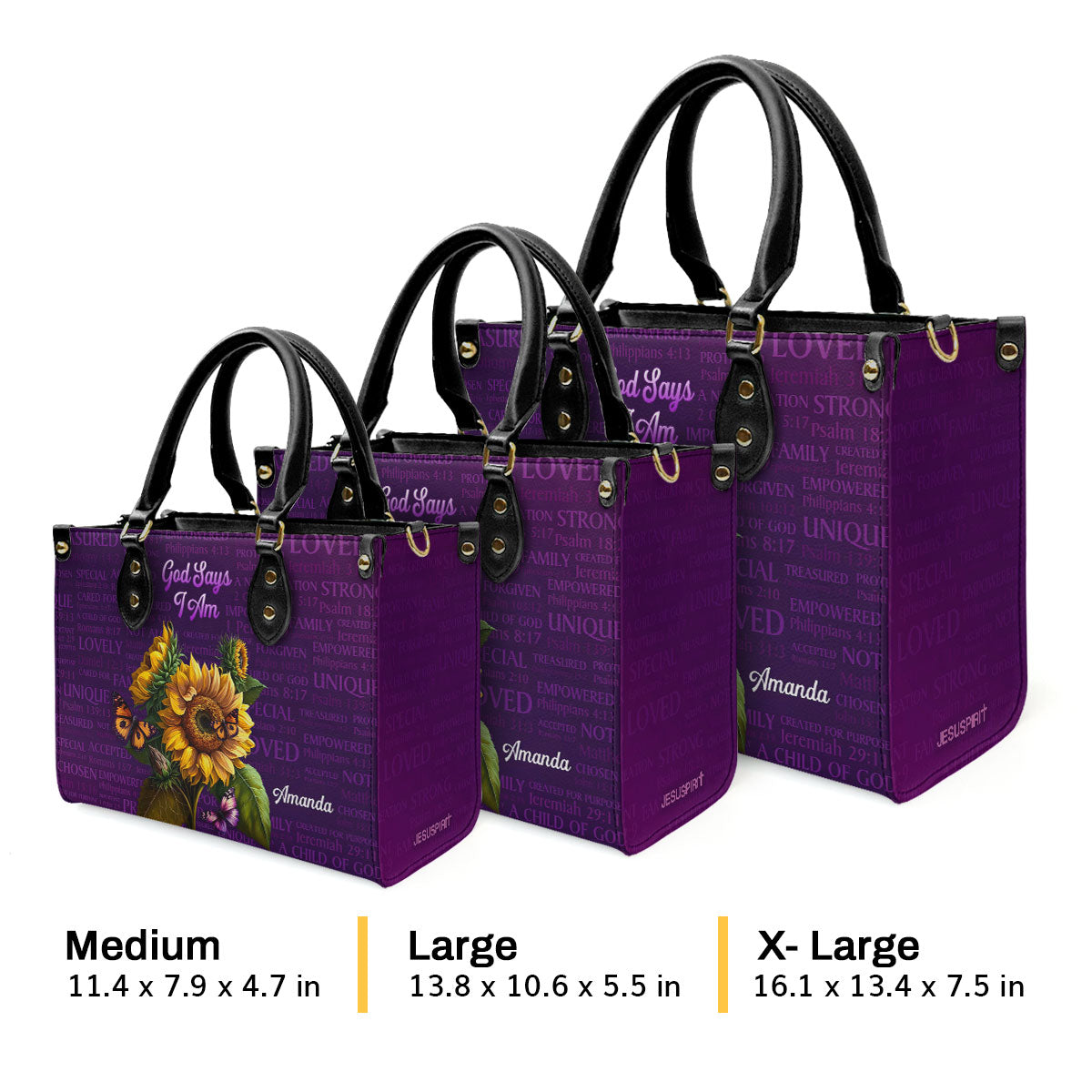 What God Says About You | Religious Gift For Christian Ladies | Personalized Leather Handbag With Handle LHBHN742W