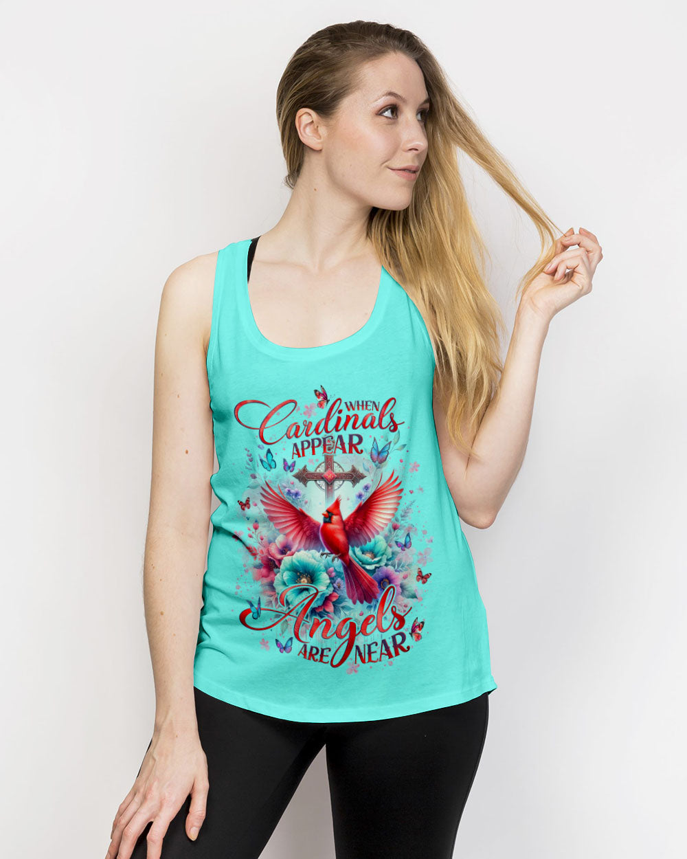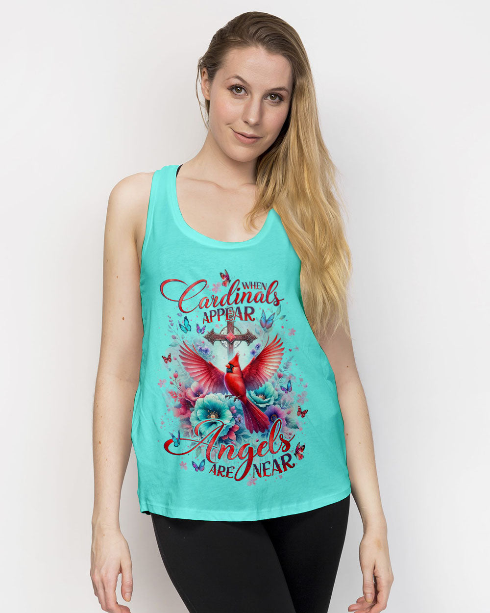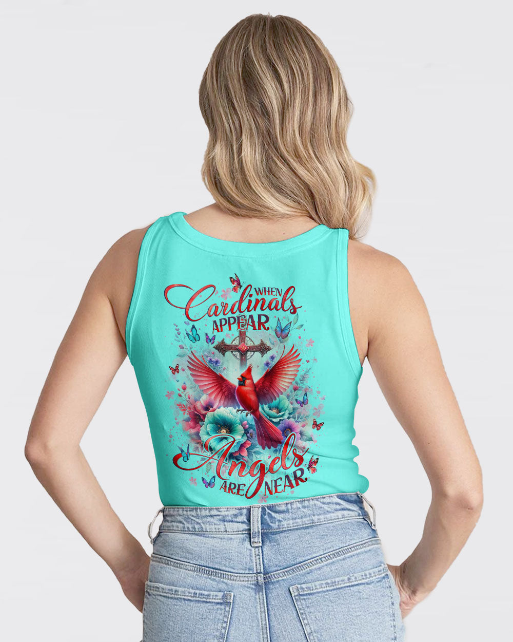 Elevate your style and faith with our stunning all over print shirt featuring a red cardinal bird perched among blooming flowers and a sacred cross. The quote "When Cardinals Appear, Angels Are Near" holds special meaning, a symbol of loved ones watching over you in moments of need.