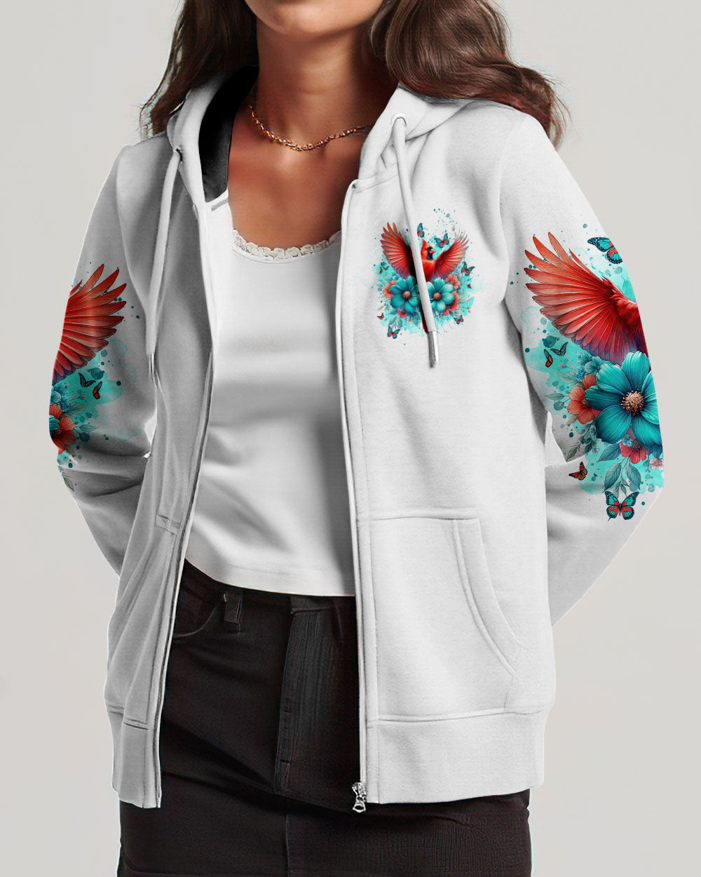 Our When Cardinals Appear Angels are Near Women's All Over Print Shirt offers stylish comfort. Its vibrant design features a red cardinal surrounded by blossoming flowers, which serves as a reminder that Jesus and angels are nearby. This garment is the perfect way to express faith and connection.