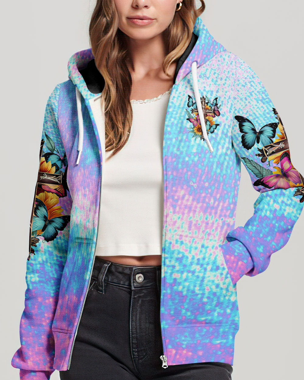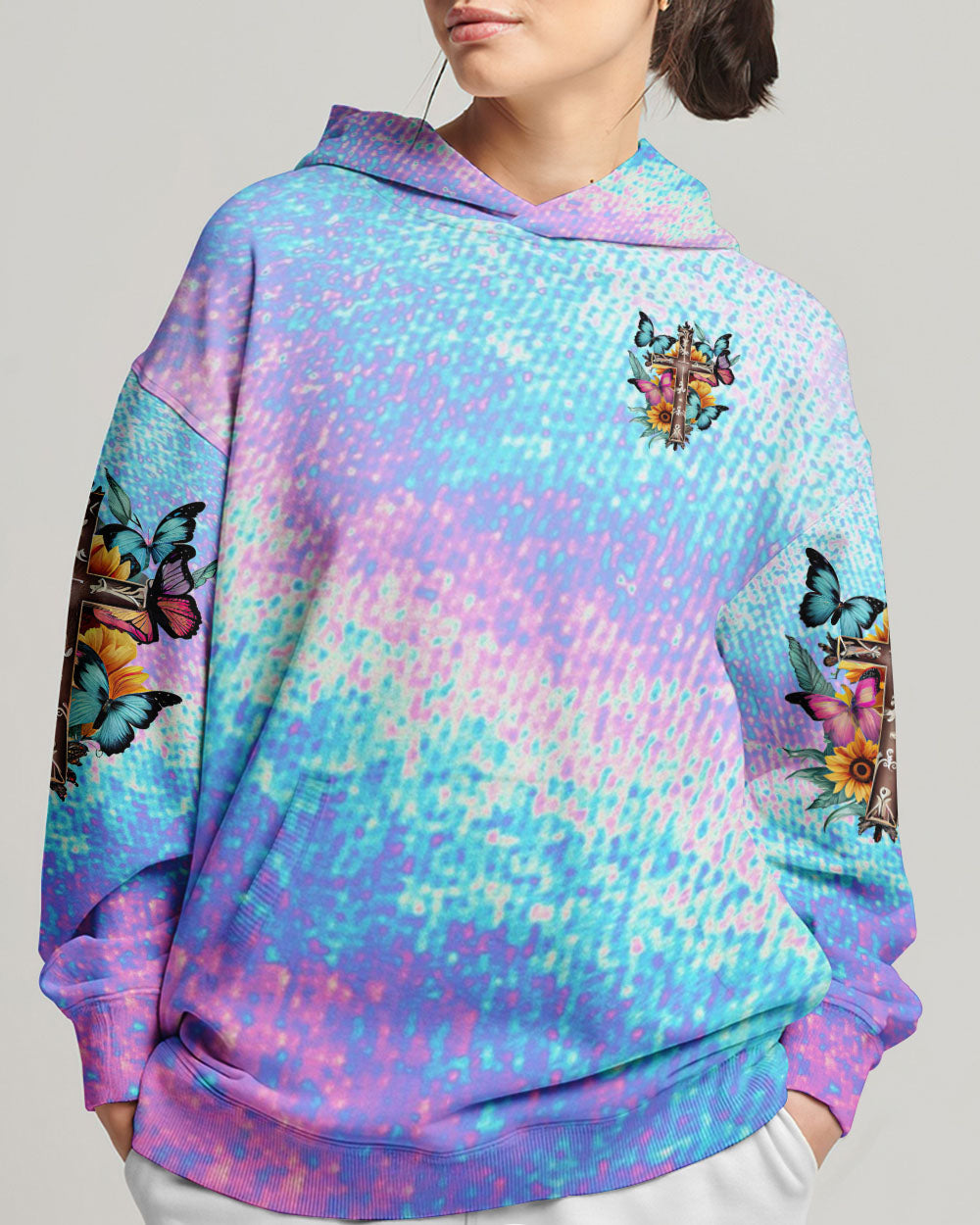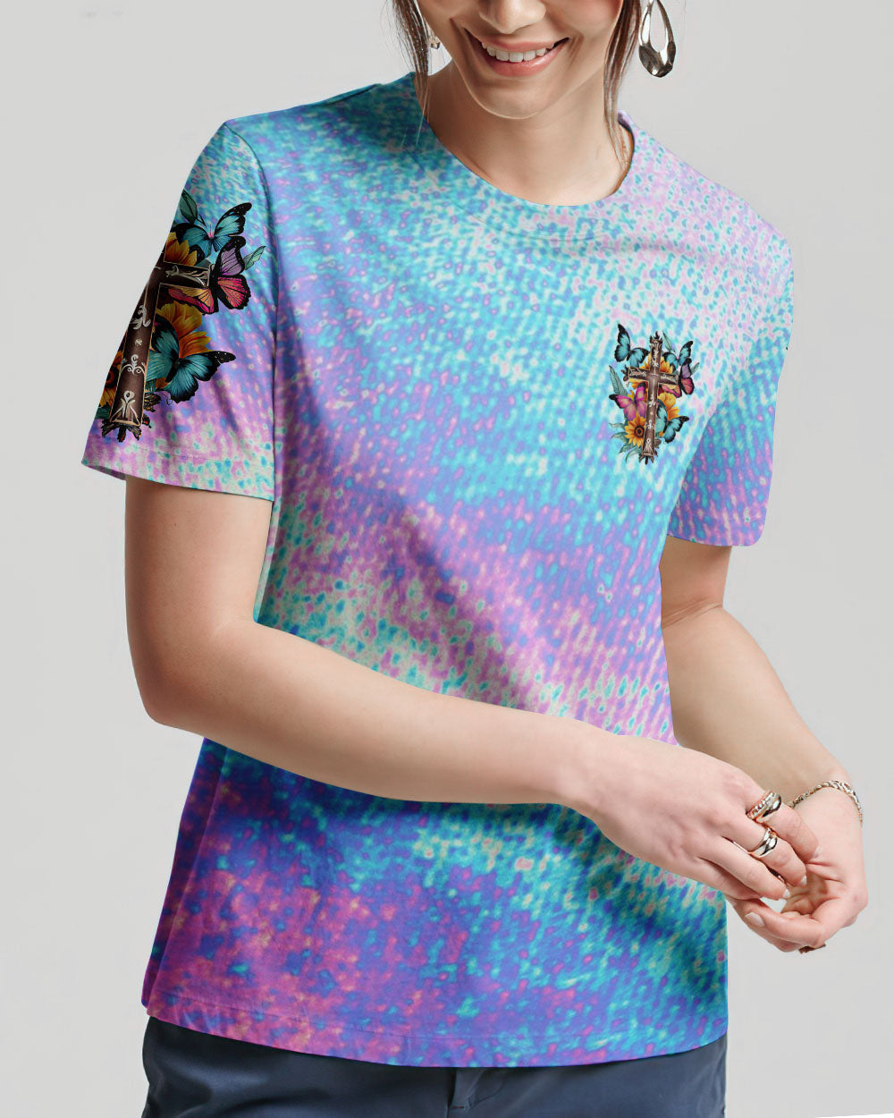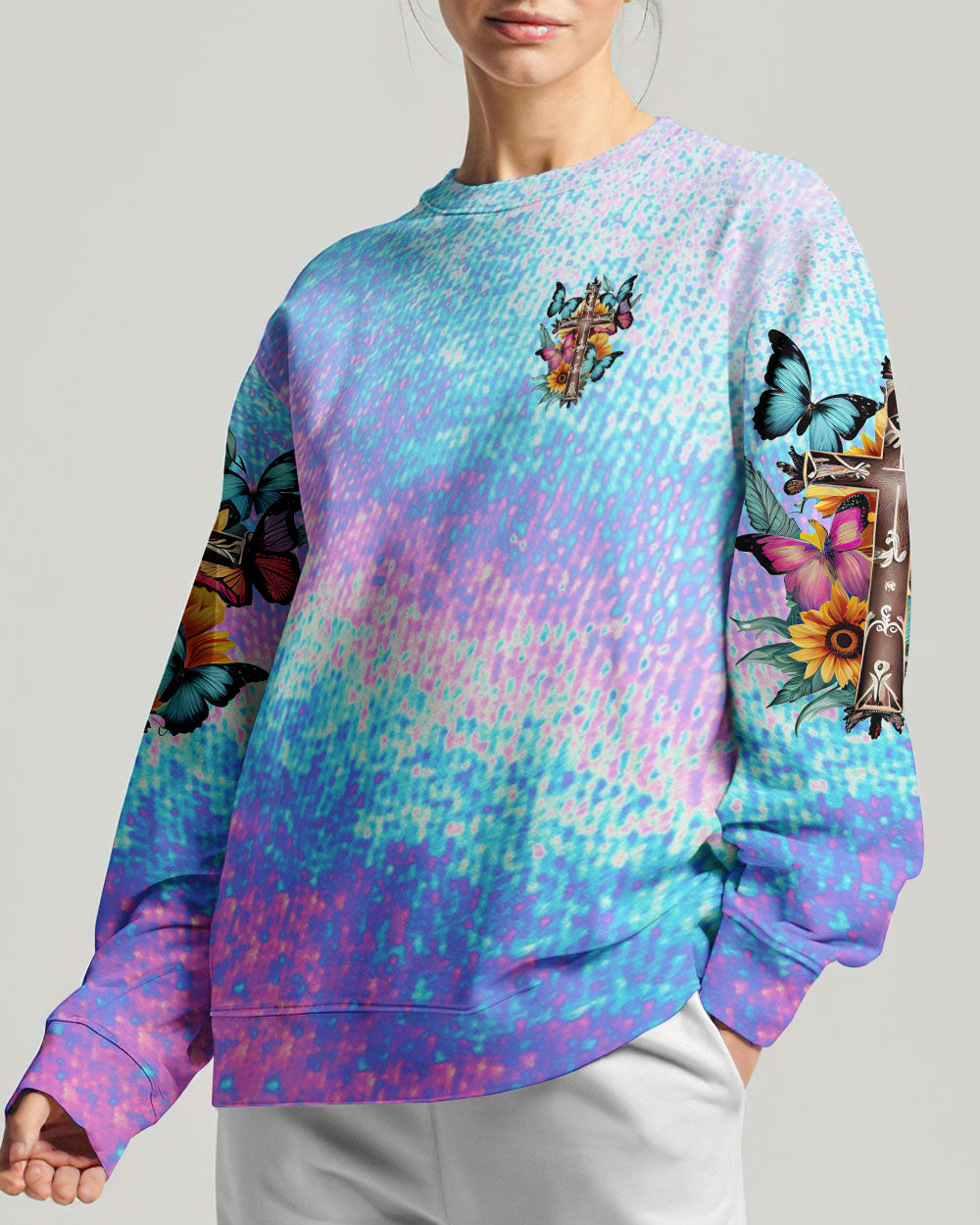 This Where There Is Faith Miracles Happen Women's All Over Print Shirt gives you a unique and beautiful way to represent your unwavering faith in Jesus Christ. Featuring a sunflower cross design adorned with graceful flying butterflies, this shirt is an elegant reminder that with faith, even in difficult times, you can invite miracles into your life.