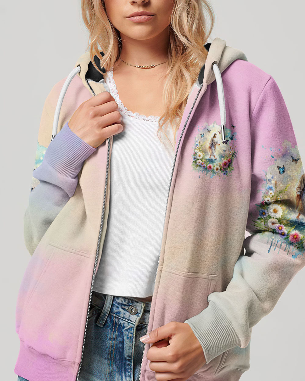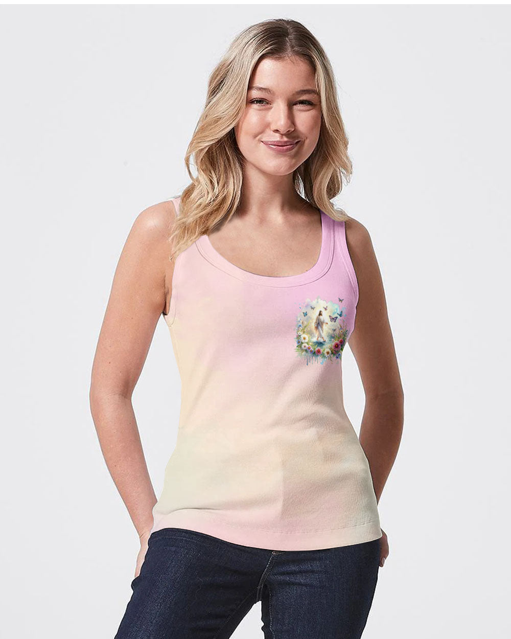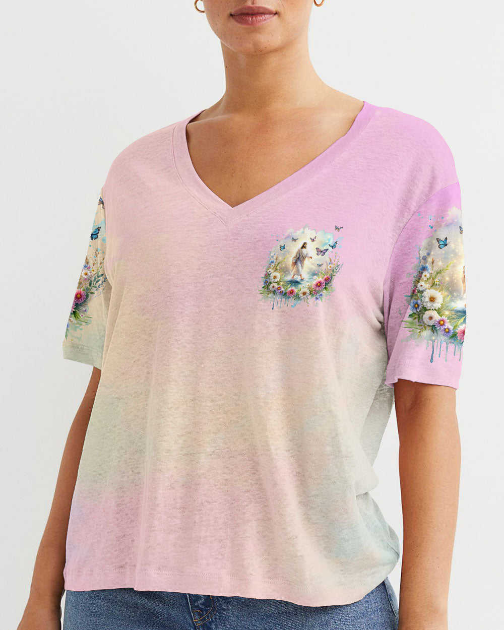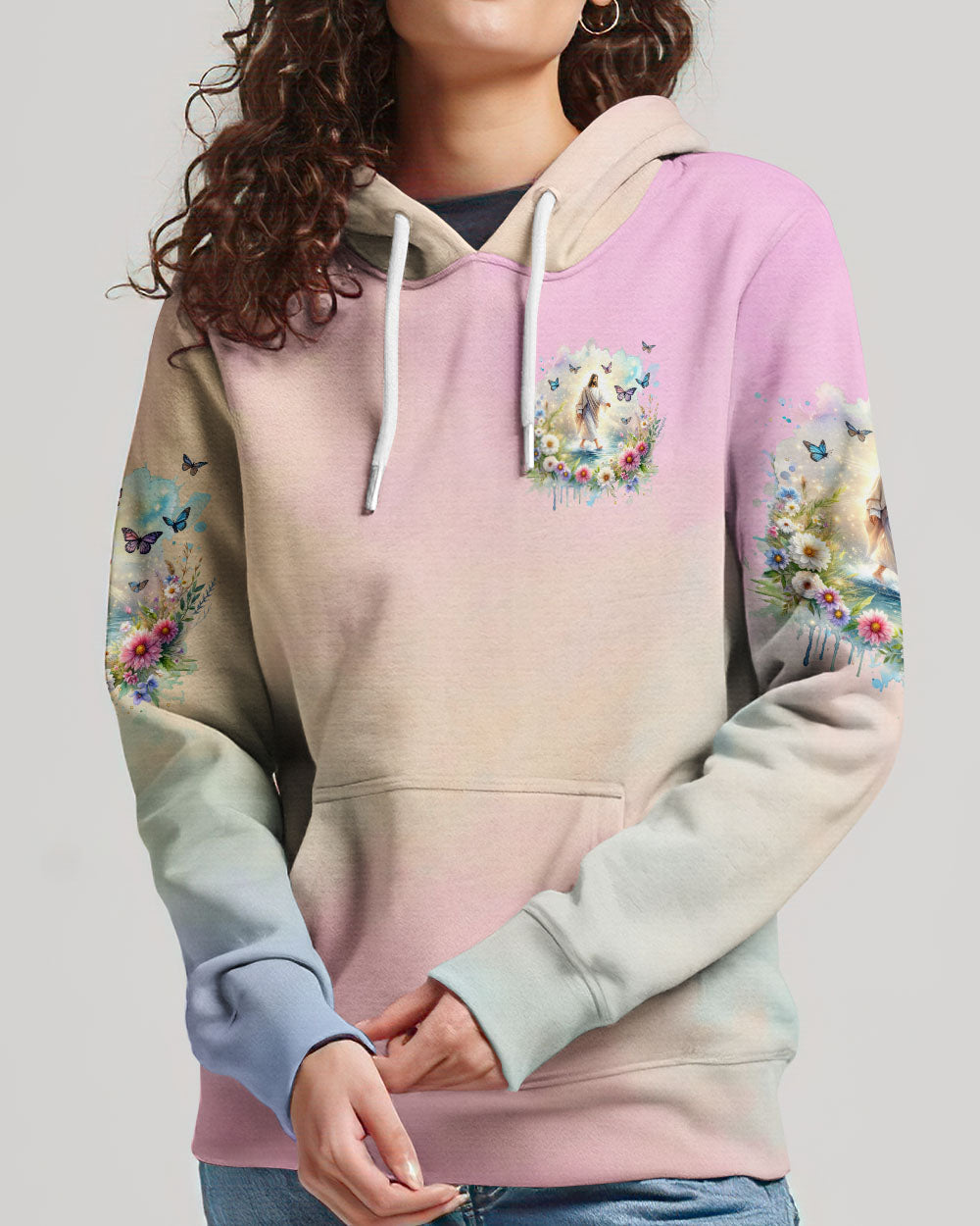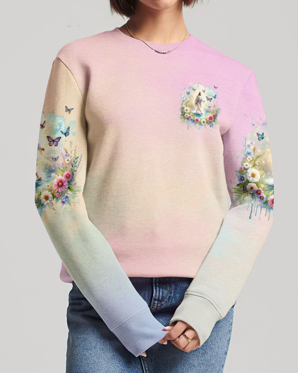 This uplifting design of Jesus walking on water amidst blooming flowers is a symbolic representation of faith. The statement, "With God, All Things Are Possible," invokes hope and a reminder that, through unwavering faith, challenges can be conquered and miracles can unfold. Experience the profound beauty of faith with this captivating all-over print shirt.