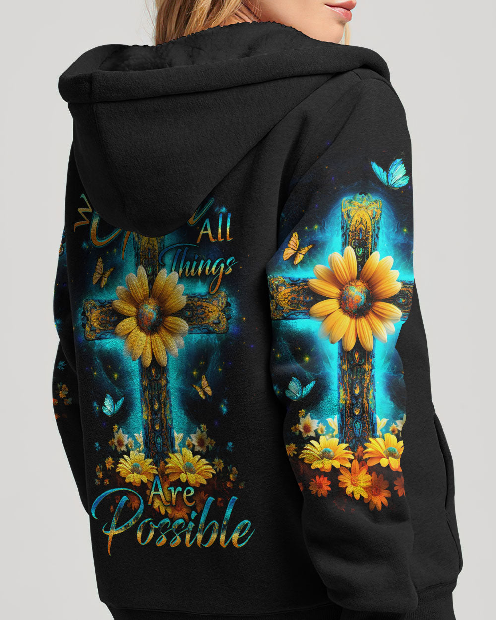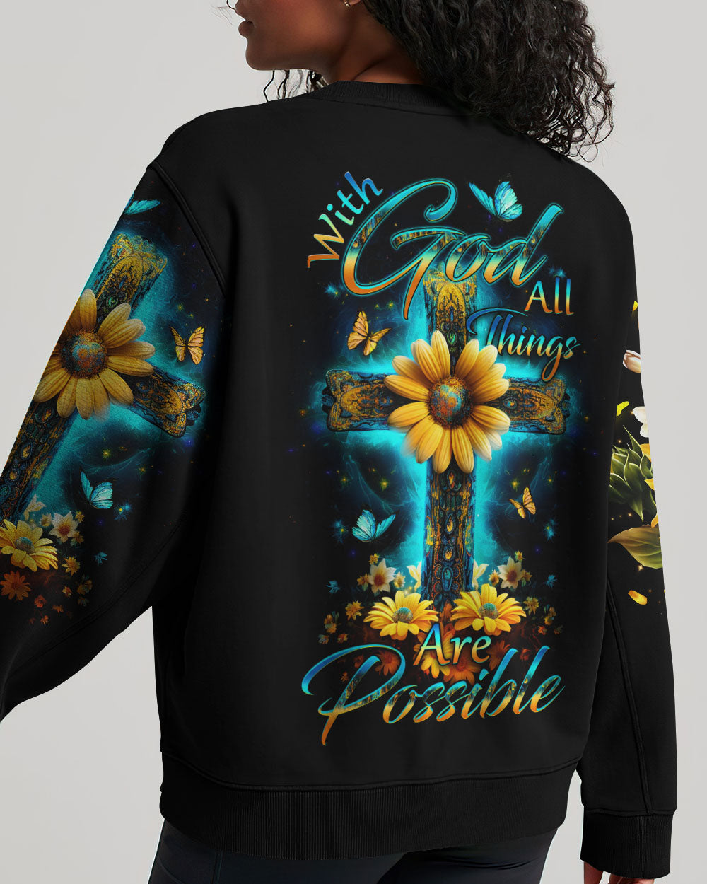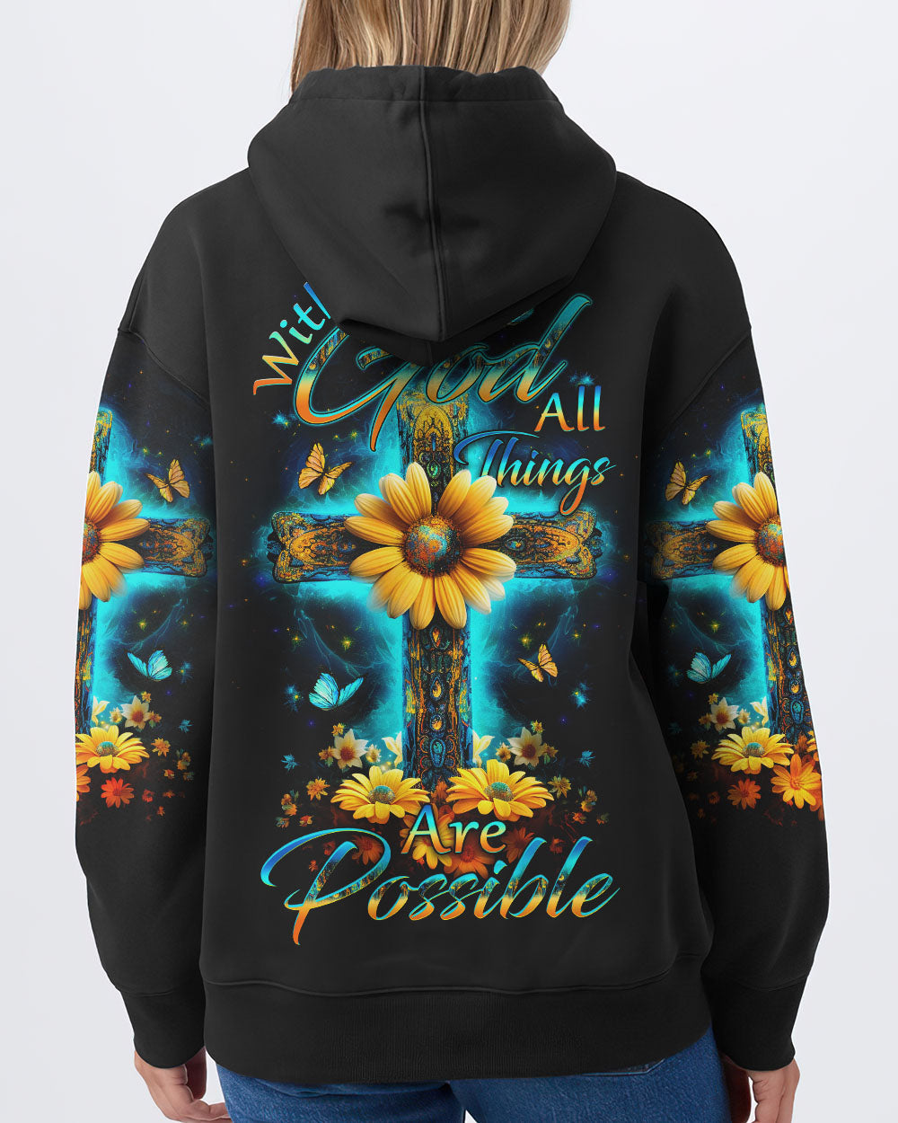 Enhance both your surroundings and your spirit with our Faith Christ Design. Envision a radiant cross, illuminated by the soft glow of divine light, graced by the eternal charm of sunflowers and butterflies. Immerse yourself in the daily inspiration of "With God All Things Are Possible." Whether you seek solace, celebrate faith, or aim to uplift your environment, this design serves as a beacon of hope and boundless potential. Seize the opportunity to invite this luminous symbol into your life today – place your order now and let your faith shine brighter than ever before.