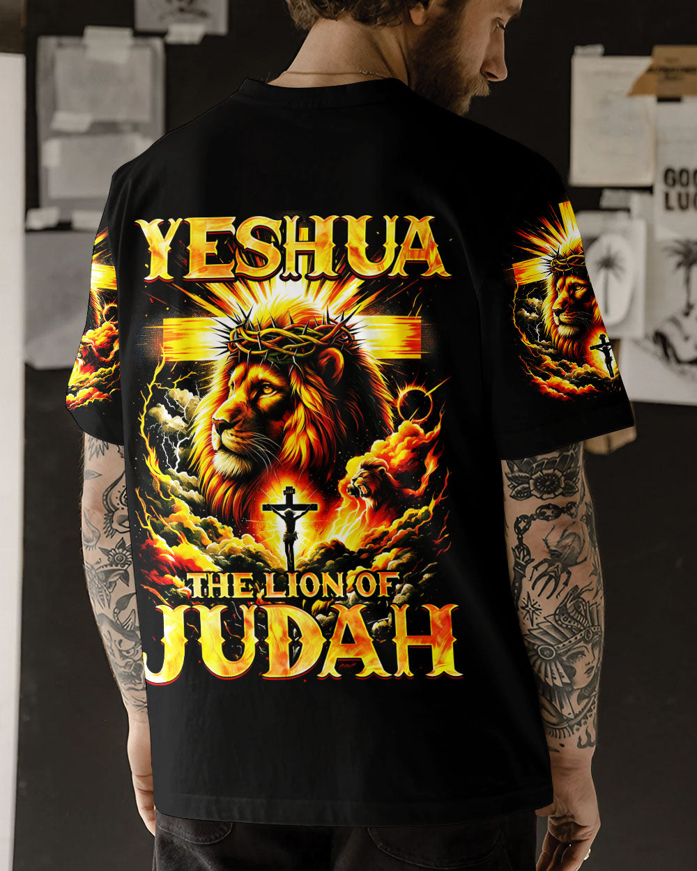 Embrace faith and victory with our Yeshua The Lion Of Judah Men's All Over Print Shirt. Featuring the mighty Lion of Judah, radiant cross, and the quote "Yeshua, The Lion of Judah," this design symbolizes the strength and divinity of Jesus Christ. Step into the realm of Christian symbolism and proclaim your faith with this dynamic and impressive shirt.