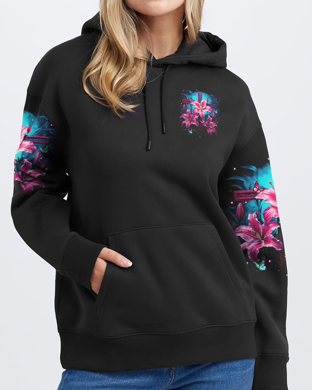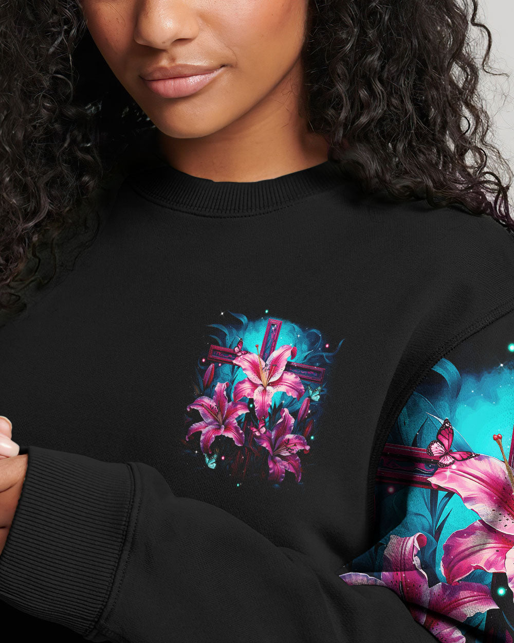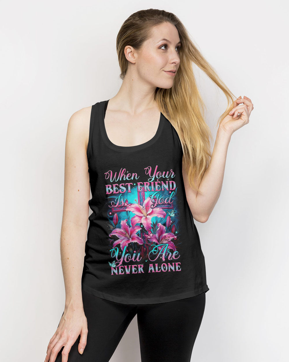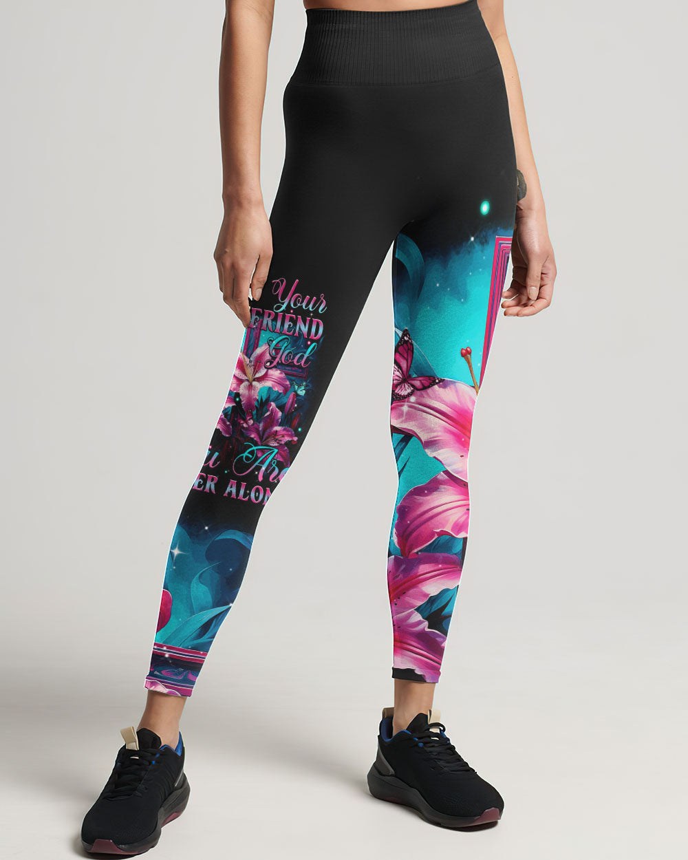 This You Are Never Alone Women's All Over Print Shirt is designed to be a powerful visual reminder of faith and God's friendship, providing strength and solace. It features crosses, lilies, butterflies, and the uplifting quote, "When Your Best Friend Is God, You Are Never Alone!" Crafted to celebrate your divine connection, this extraordinary piece will make you feel you belong, no matter the situation.