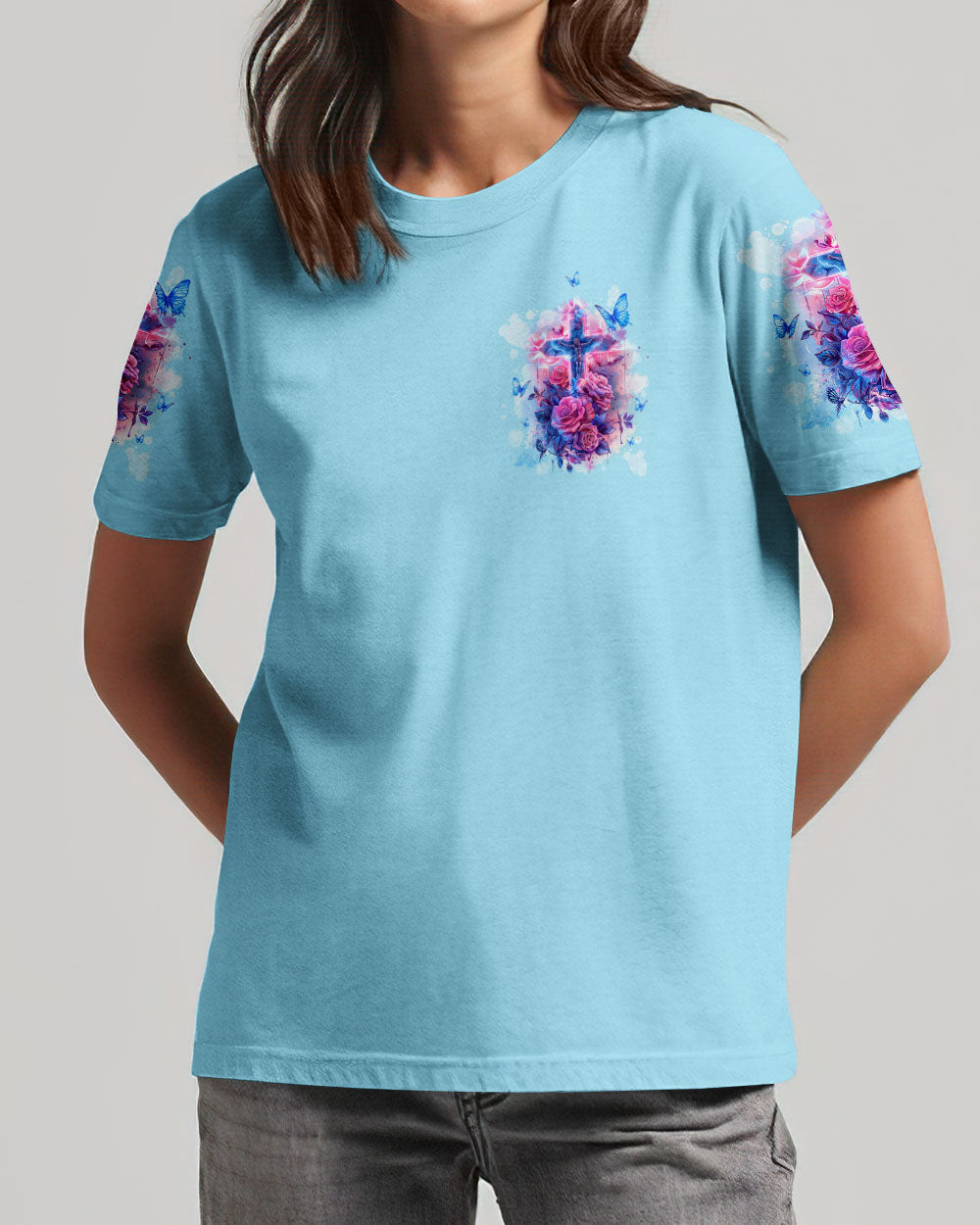 Illuminate your faith with our You Can't Break A Woman Cross Rose Women's All Over Print Shirt. The intertwined cross and glowing roses symbolize unwavering devotion to Jesus Christ, while the saying highlights the resilience of a woman who draws strength from God. With this shirt, show the world your unbreakable spirit fueled by unwavering faith.