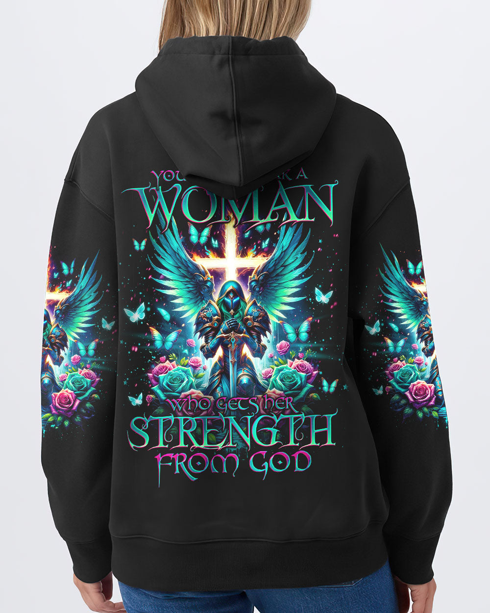 Embrace the empowering energy of our fierce female warrior design, adorned with roses symbolizing resilience and grace. The quote, "You can't break a woman who gets her strength from God," signifies unwavering faith and inner strength derived from a divine source. Order now and embody unbreakable resilience fortified by a profound spiritual foundation!