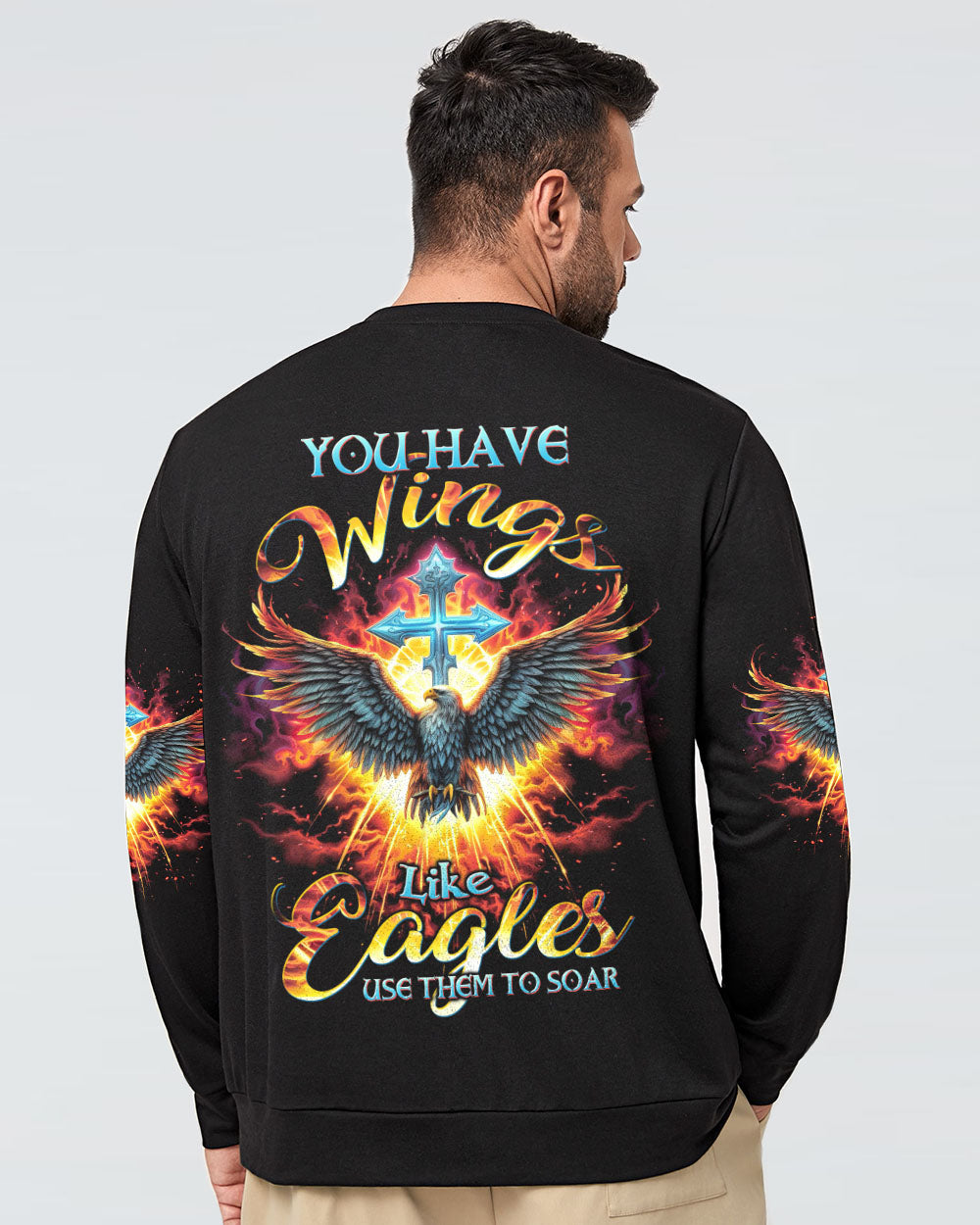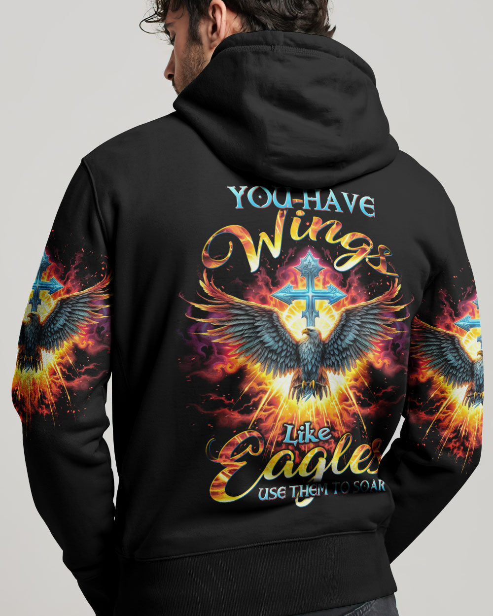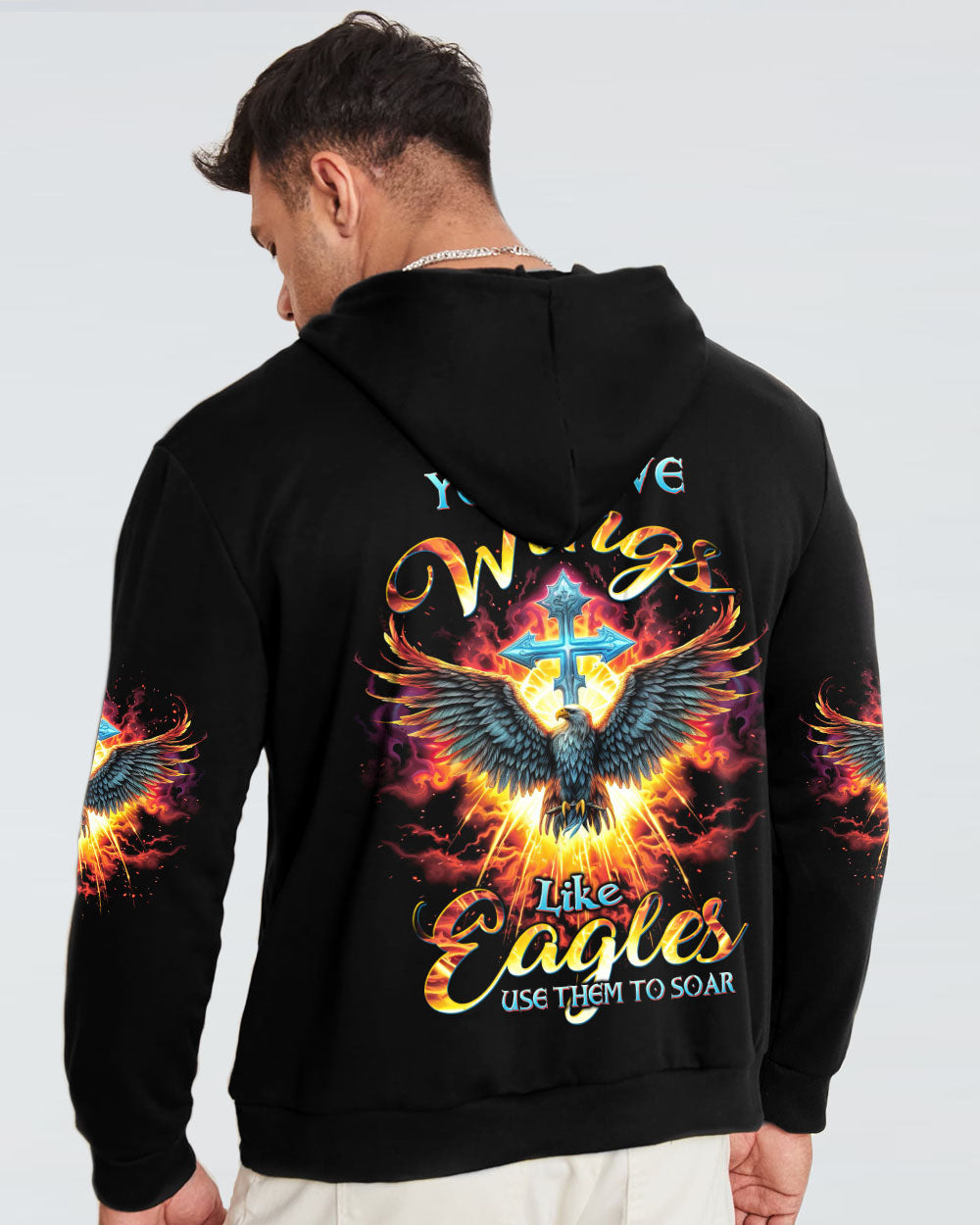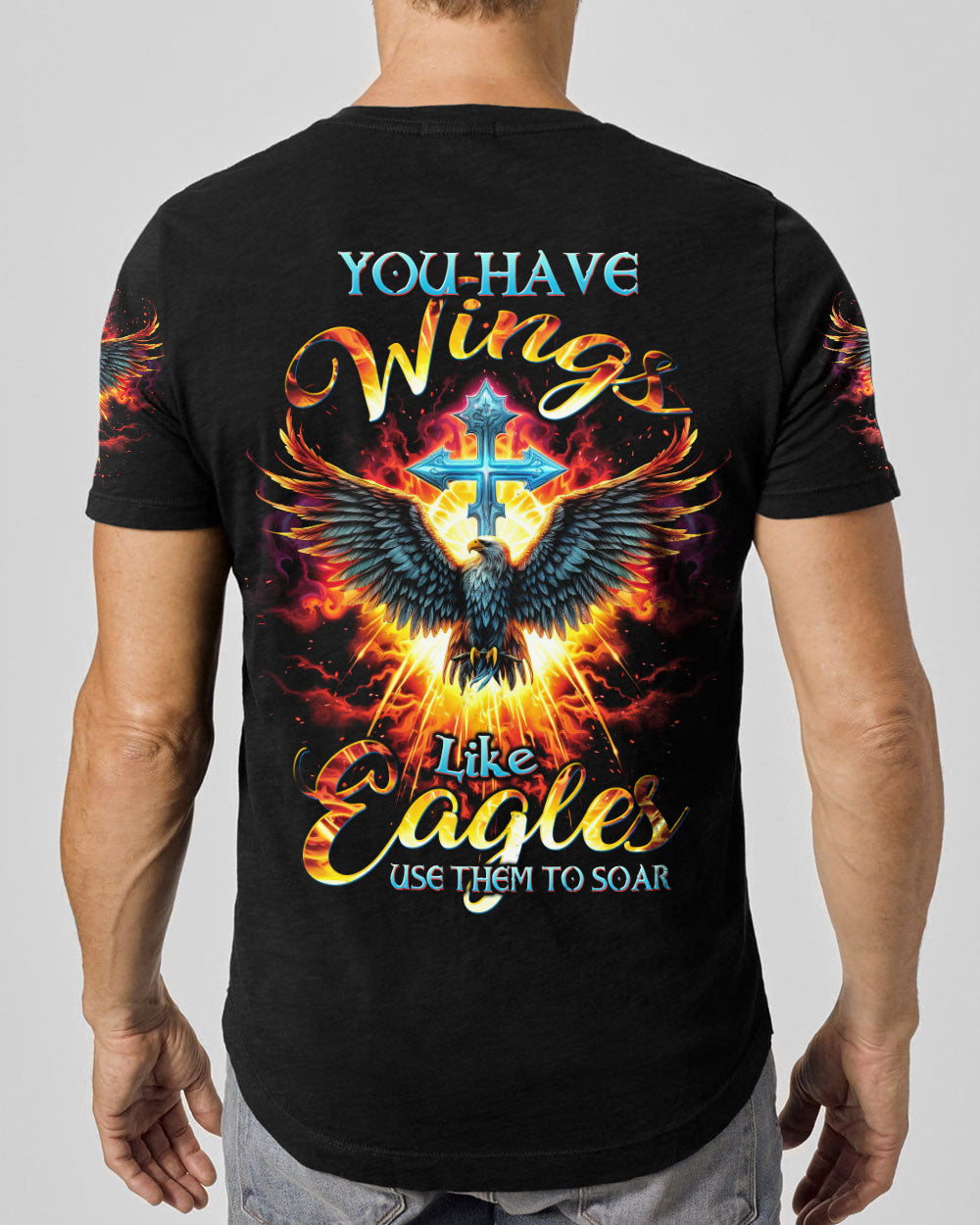 Presenting our magnificent eagle and cross design, a potent symbol of strength and steadfast faith in Jesus. This design eloquently conveys the message, "you have wings like eagles, use them to soar." It serves as a constant reminder that, through faith, we hold the power to ascend beyond adversity and obstacles, mirroring the majestic flight of eagles in the sky. Embrace your inner fortitude and let this design ignite your faith, encouraging you to unfurl your wings, conquer life's challenges, and soar to new heights on your life's journey.