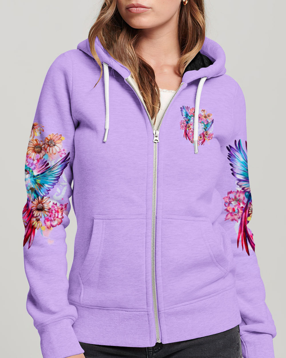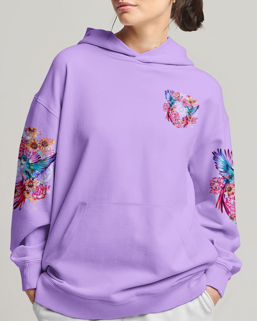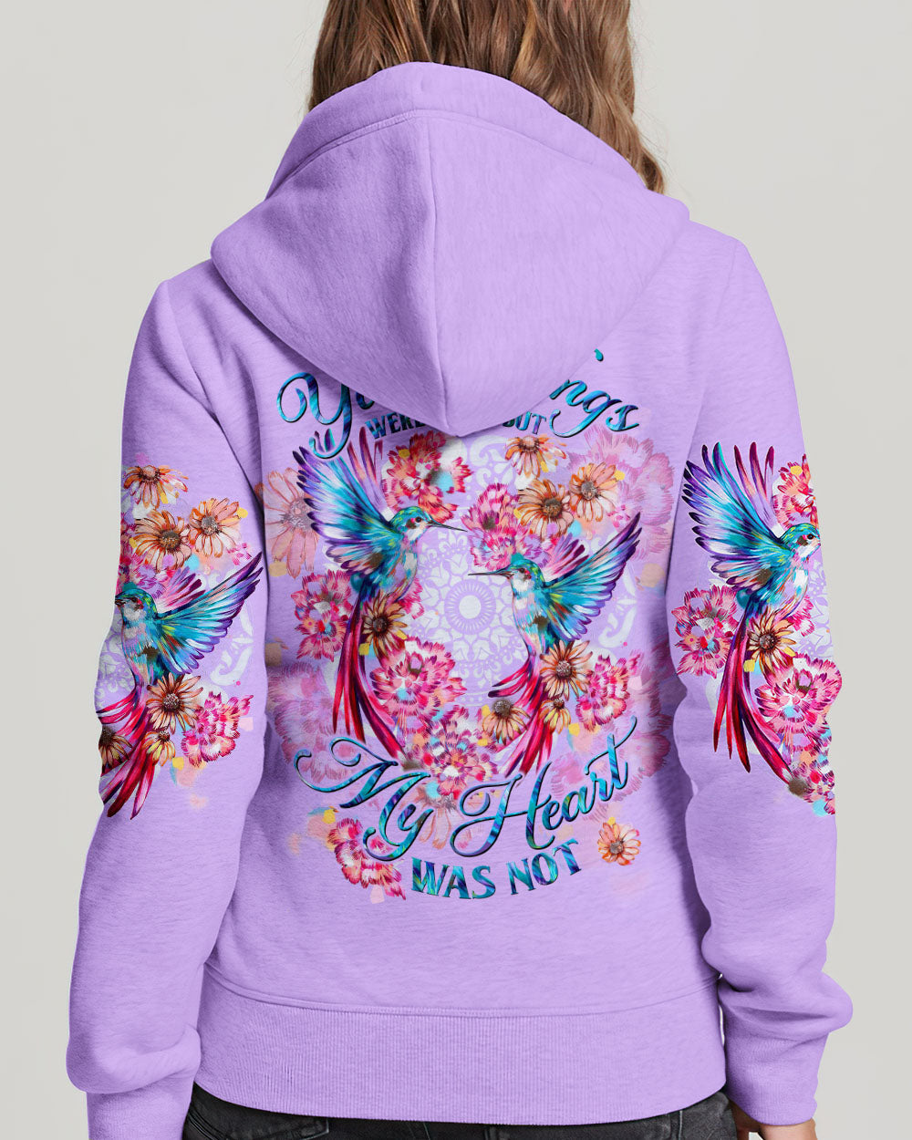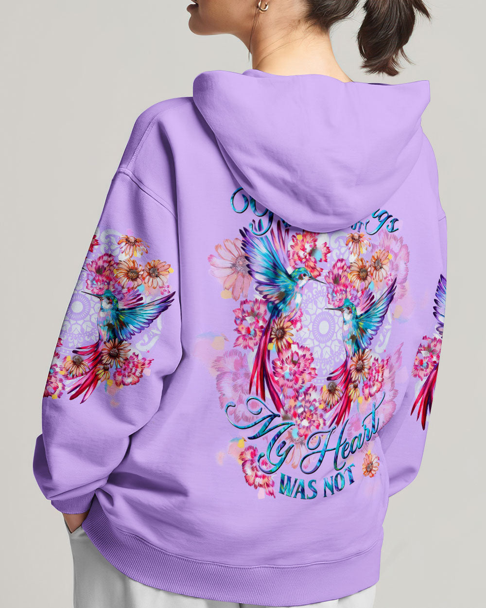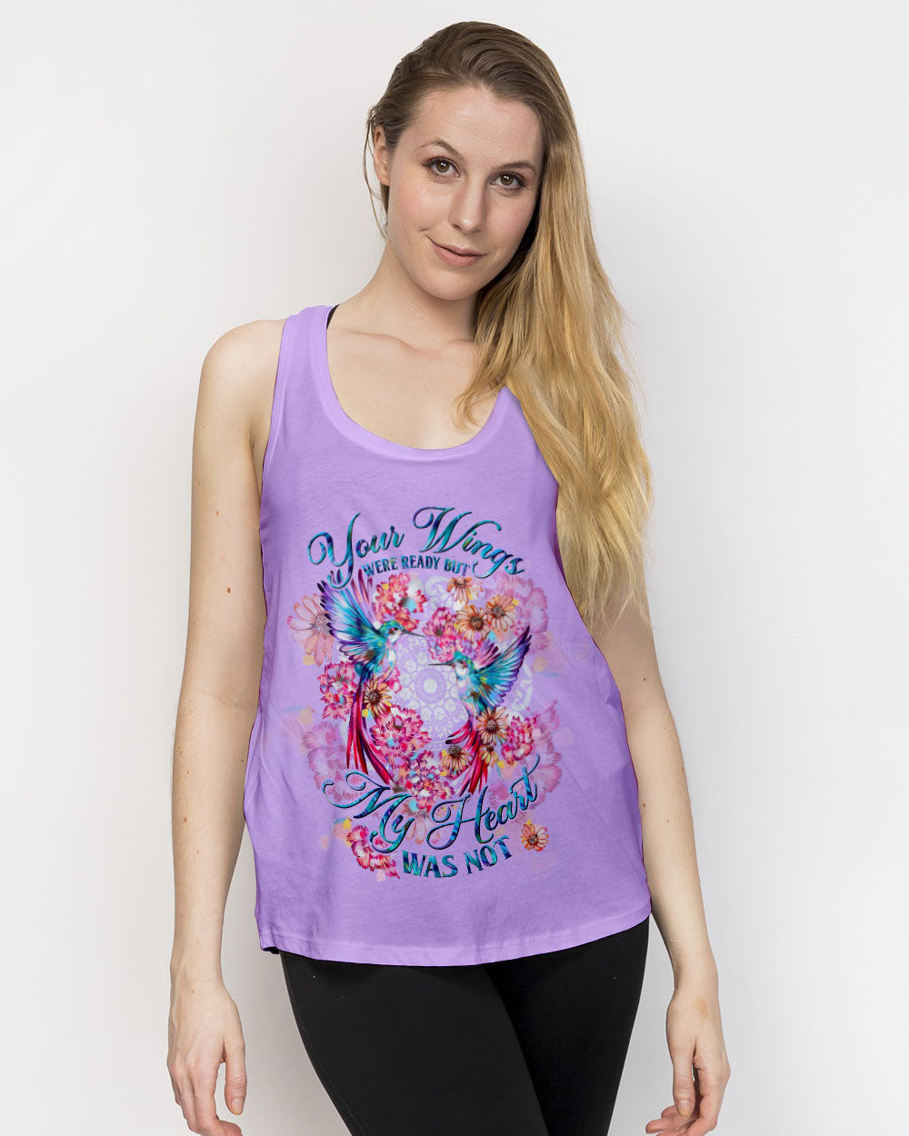This Your Wings Were Ready Women's All Over Print Shirt is an elegant display of remembrance. The beautiful hummingbird design, framed by delicate flowers, carries the touching message, "Your Wings Were Ready but my heart was not." Wear this shirt as a stylish tribute to remember the enduring love of those dear to you whose presence lives on in your heart.